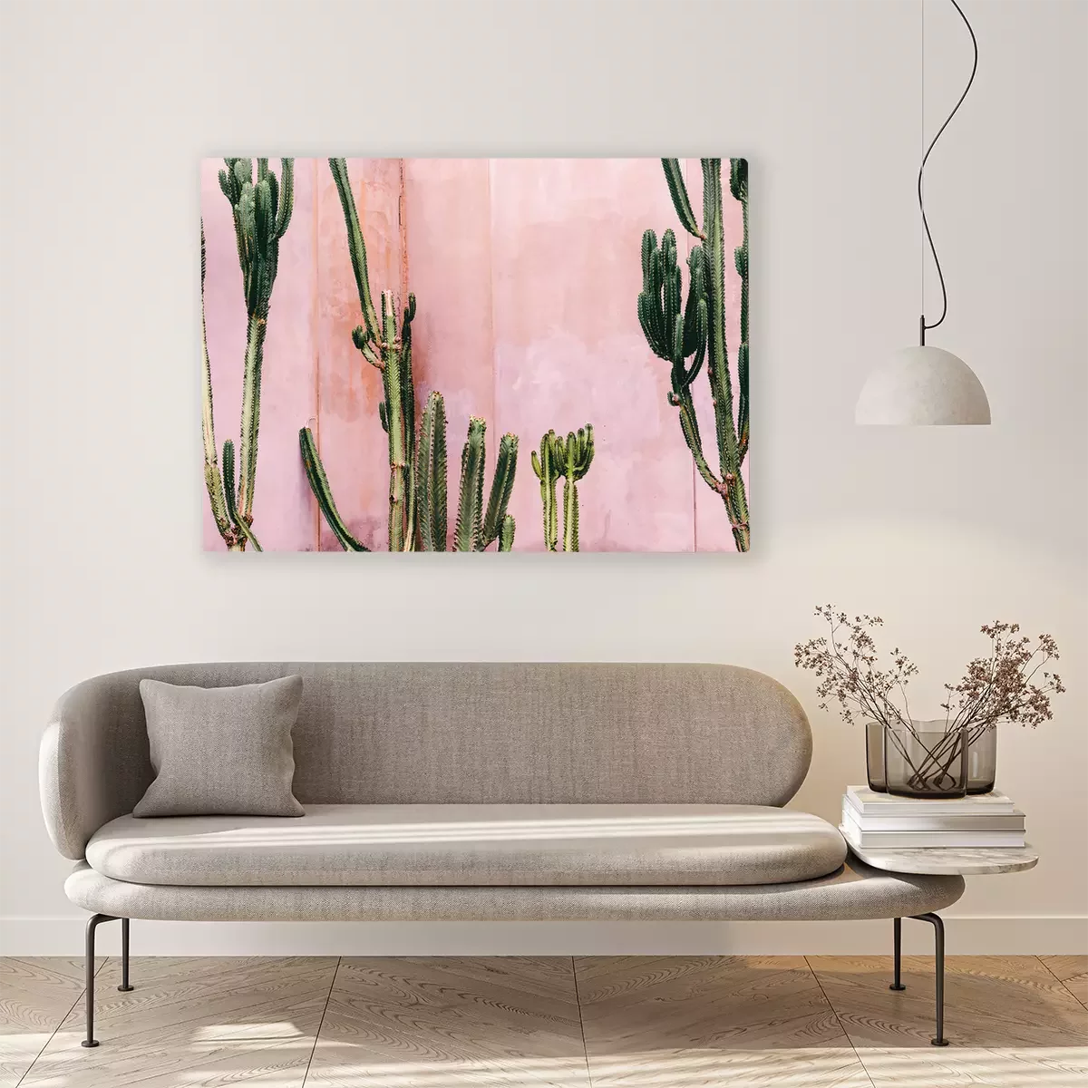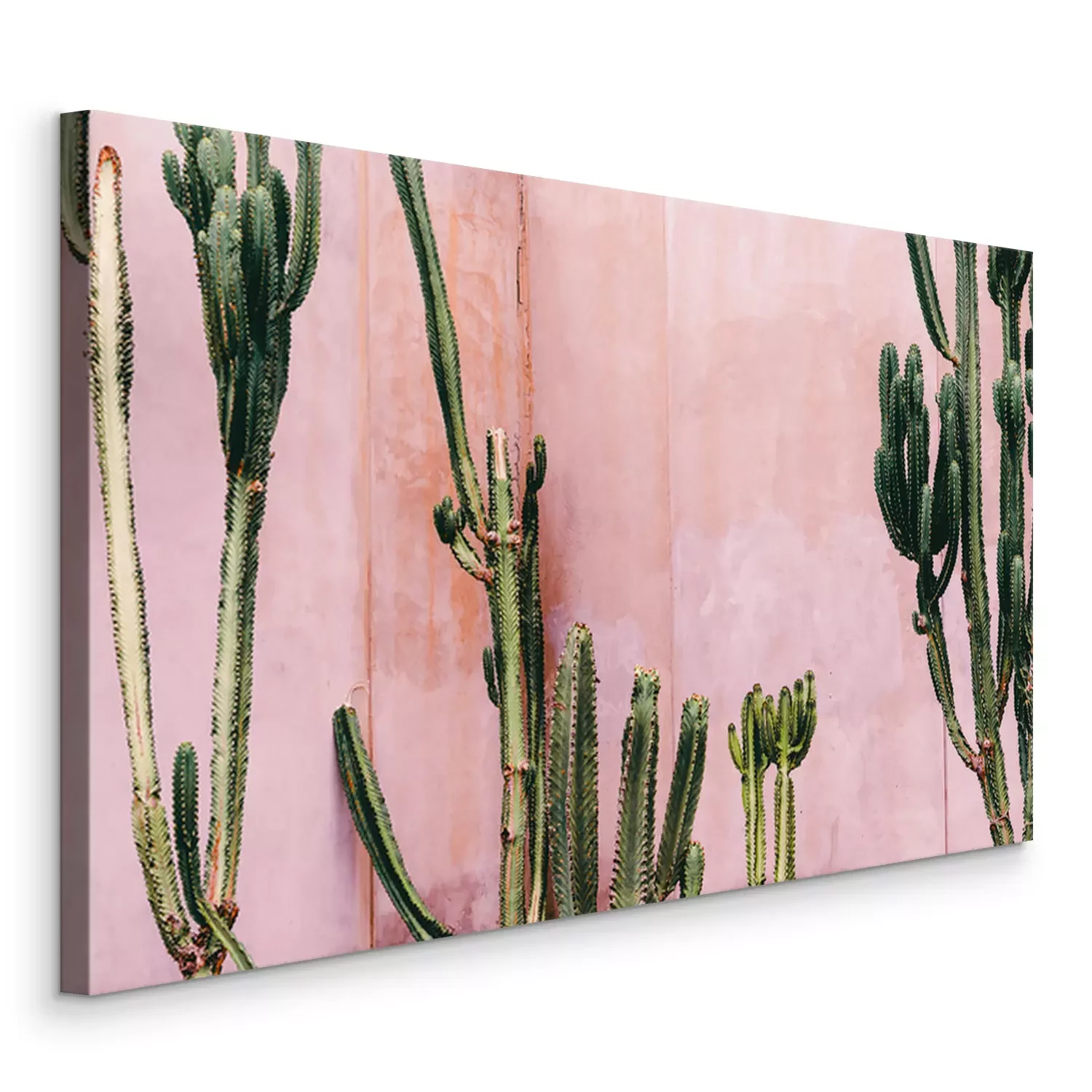 Canvas: Exotische cactussen op betonnen achtergrond in roze tinten