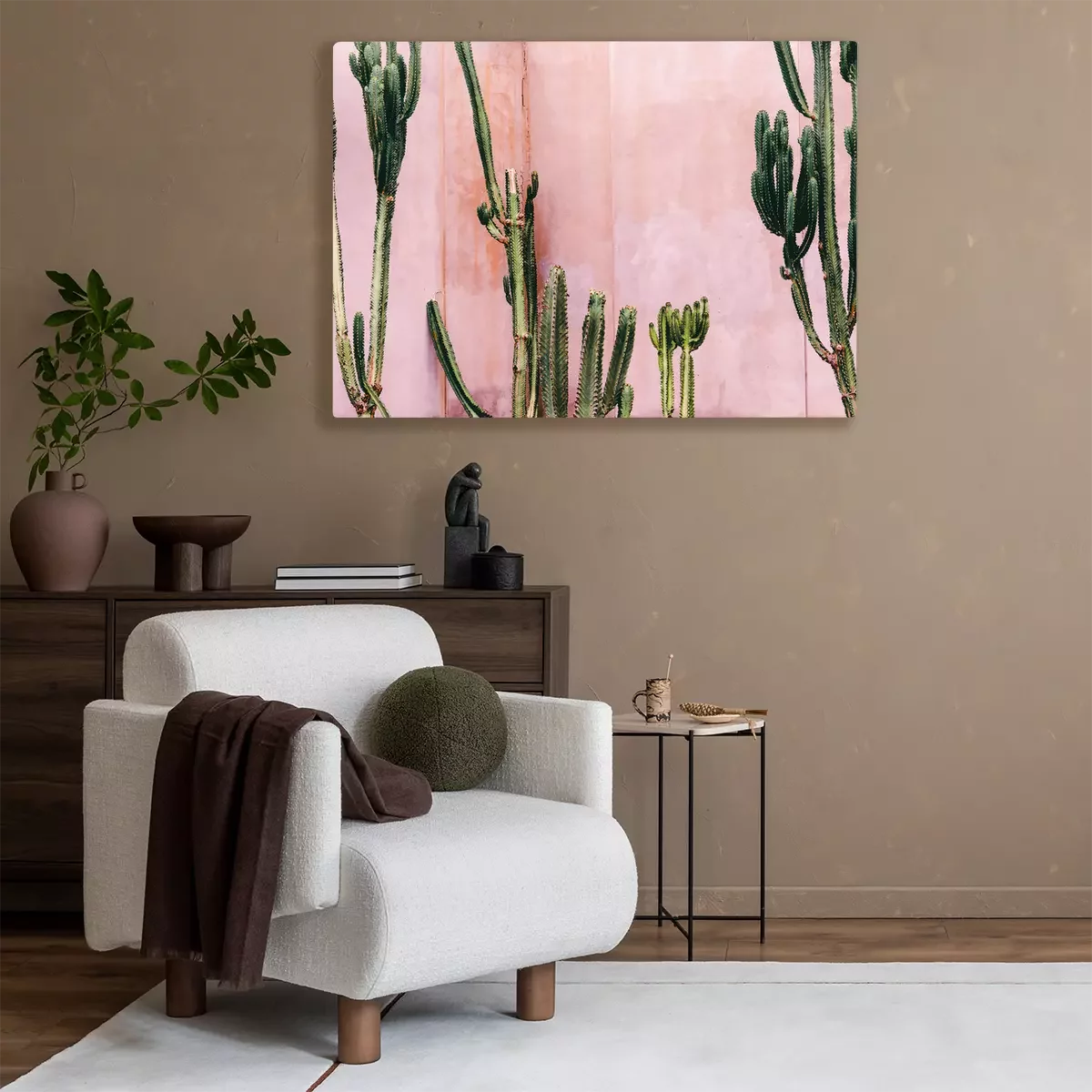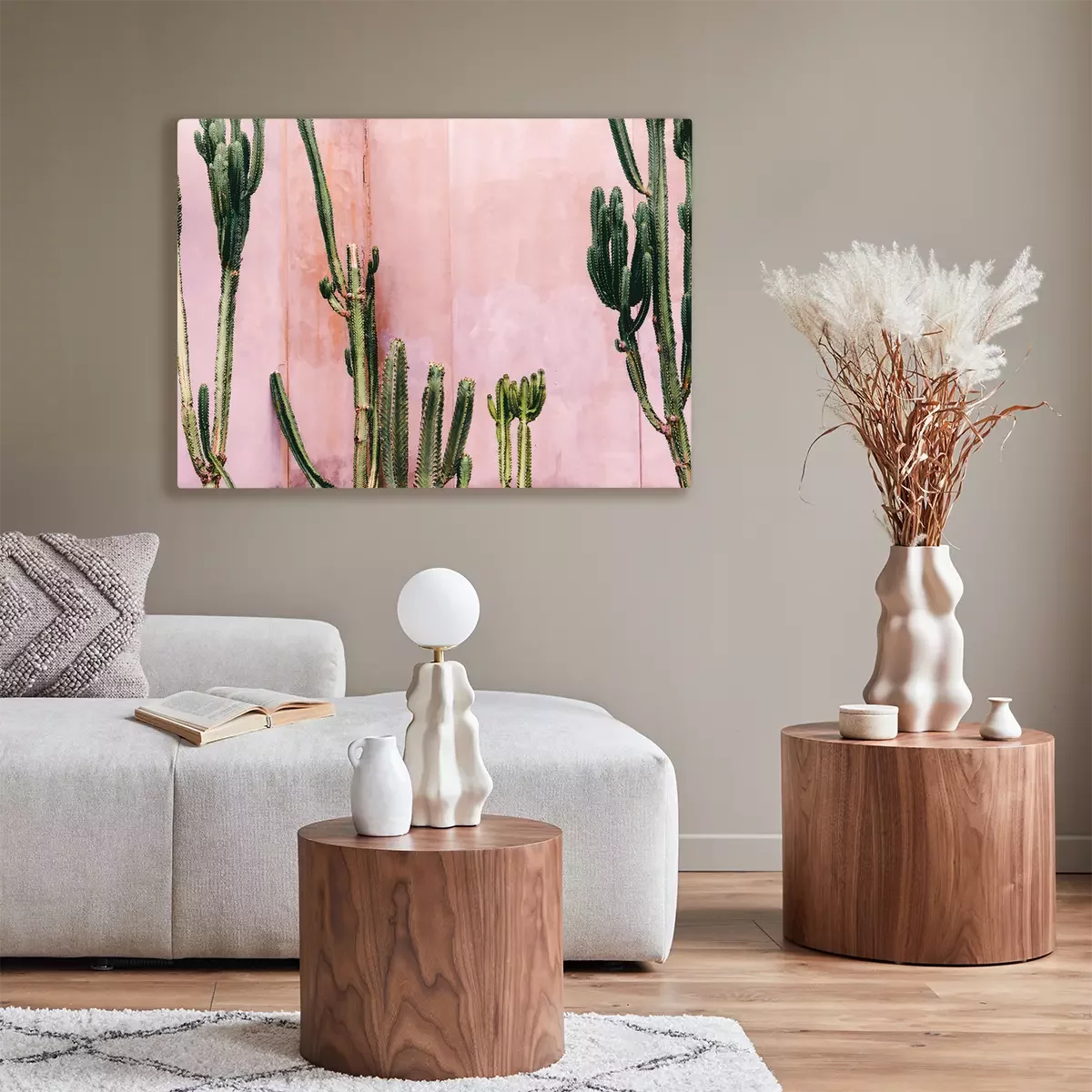 Canvas Exotische cactussen op betonnen achtergrond in roze tinten