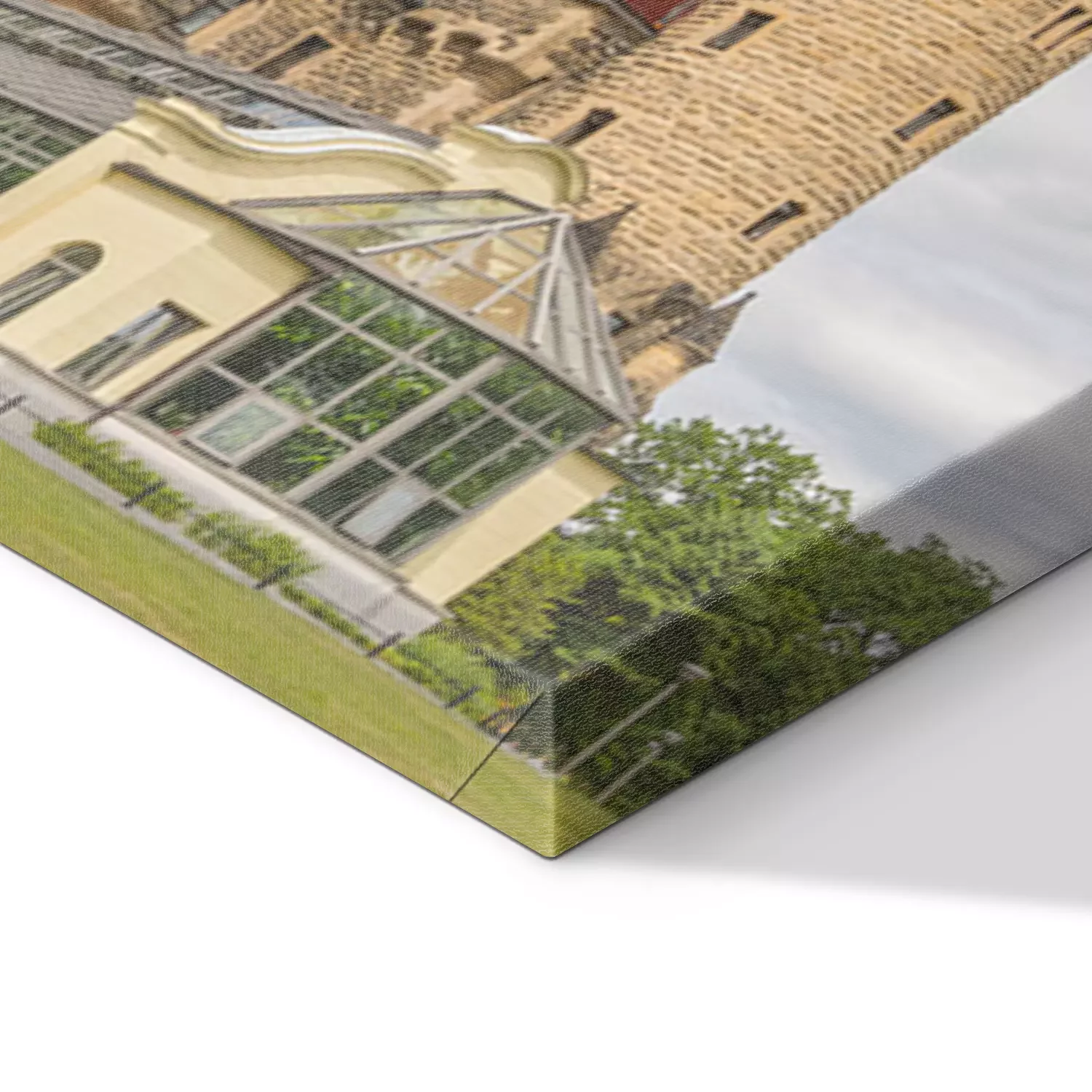 De print wordt aangebracht op hoogwaardig canvas dat op een schildersweefgetouw (spieraam) wordt gespannen. Omdat de print de zijranden bedekt, hoeft het ontwerp niet met een extra kader te worden omlijst. Wij raden ook composities aan die uit meerdere foto's bestaan en zo een coherente compositie vormen.