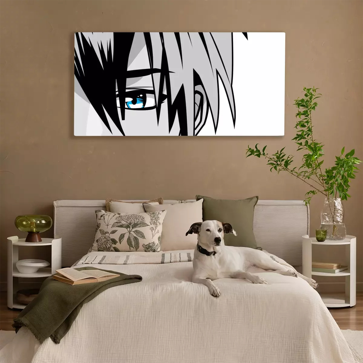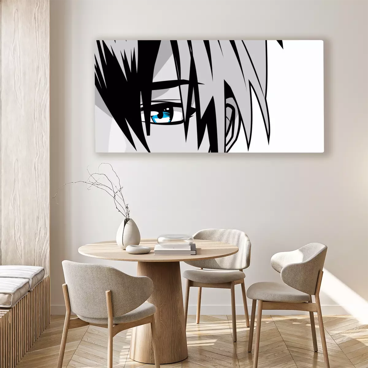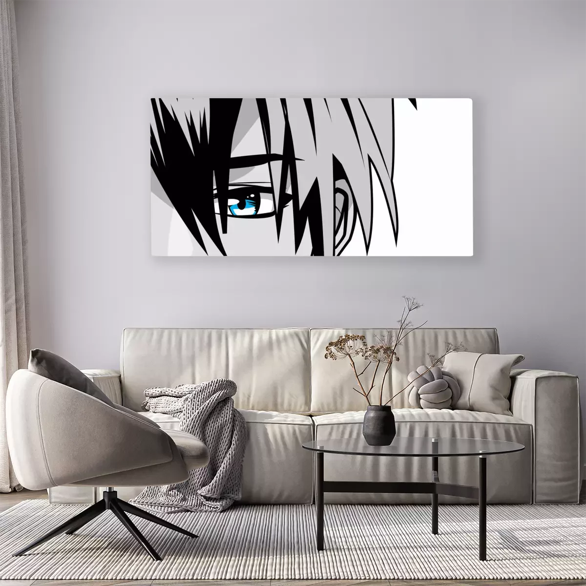 Canvas face young man monochrome anime style character