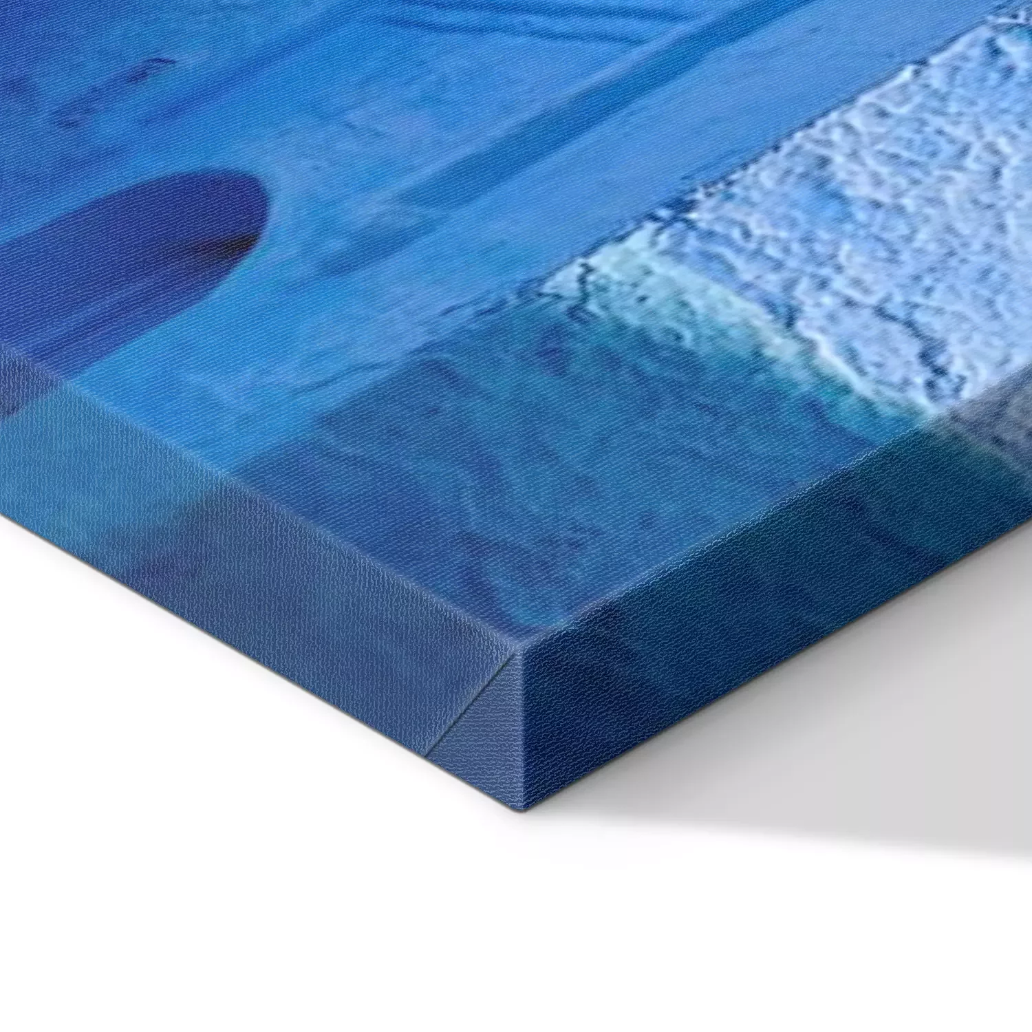 De print wordt aangebracht op hoogwaardig canvas dat op een schildersweefgetouw (spieraam) wordt gespannen. Omdat de print de zijranden bedekt, hoeft het ontwerp niet met een extra kader te worden omlijst. Wij raden ook composities aan die uit meerdere foto's bestaan en zo een coherente compositie vormen.