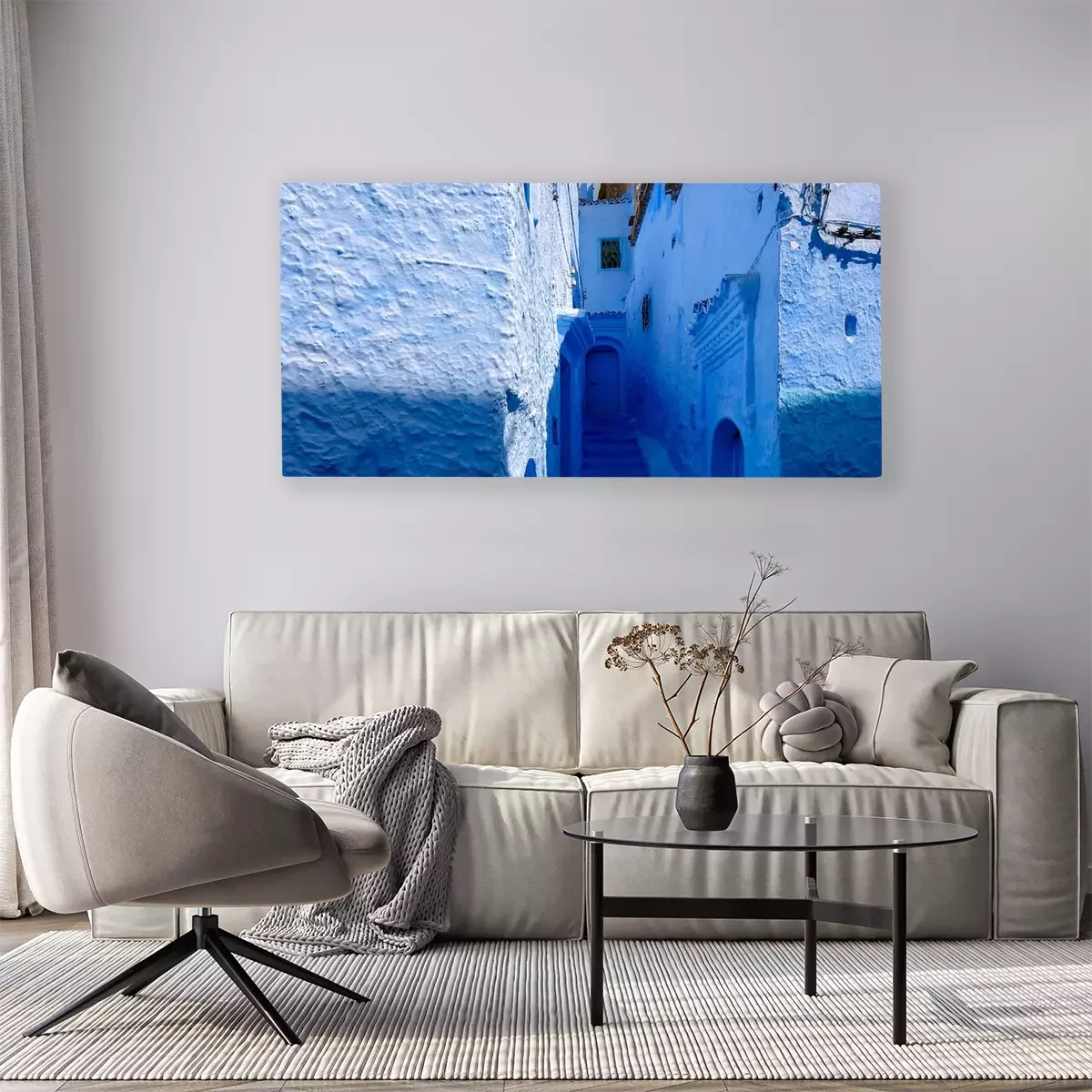 Canvas: Famous blue wall city of Chefchaouen, Morocco.
