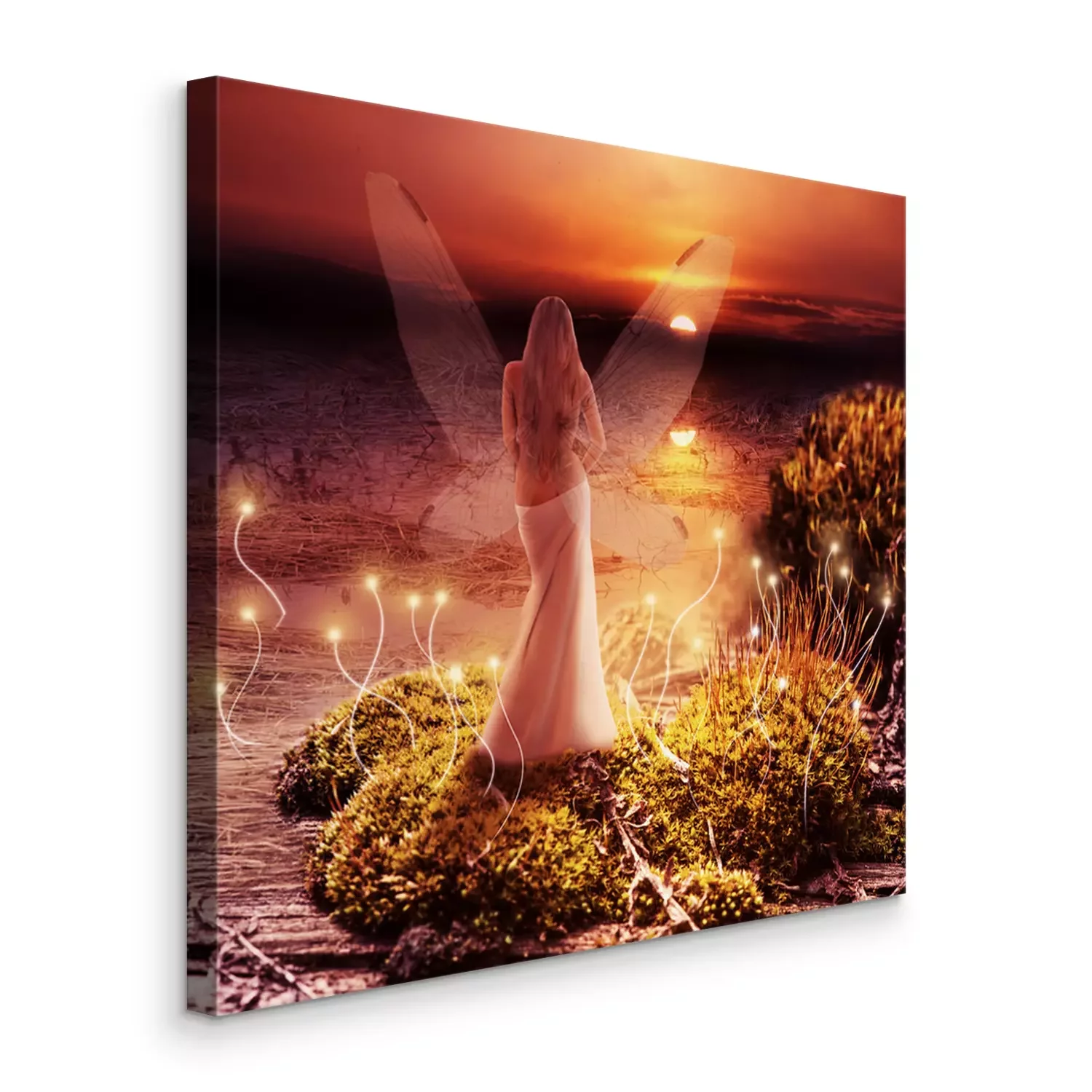 Canvas Fantasie magische wereld. Pixie en zonsondergang
