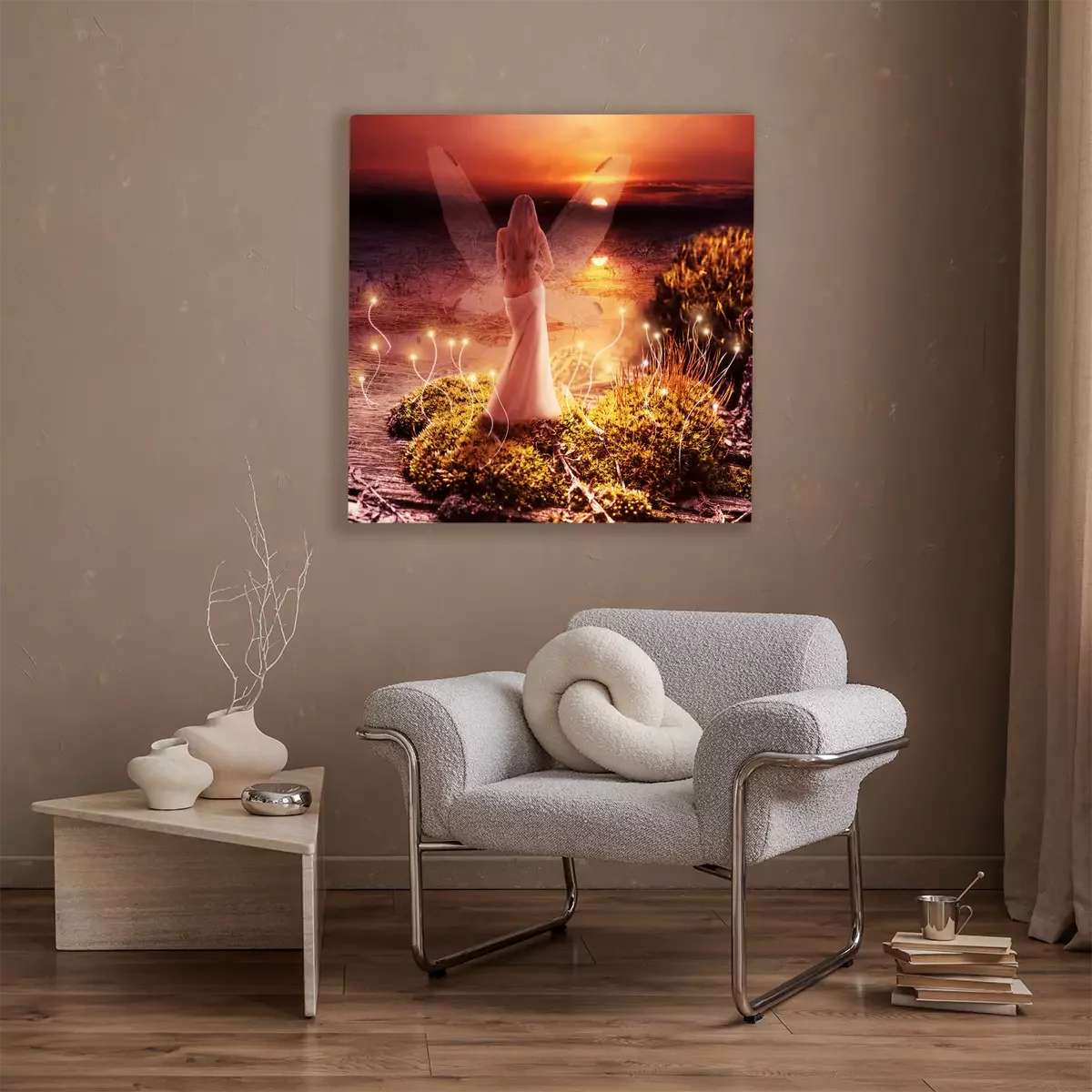 Canvas: Fantasie magische wereld. Pixie en zonsondergang