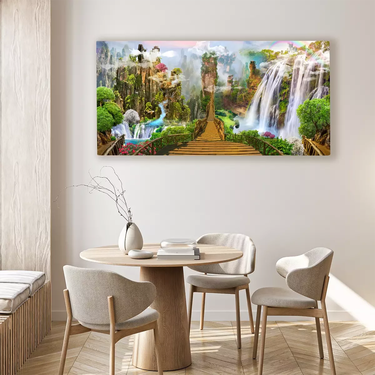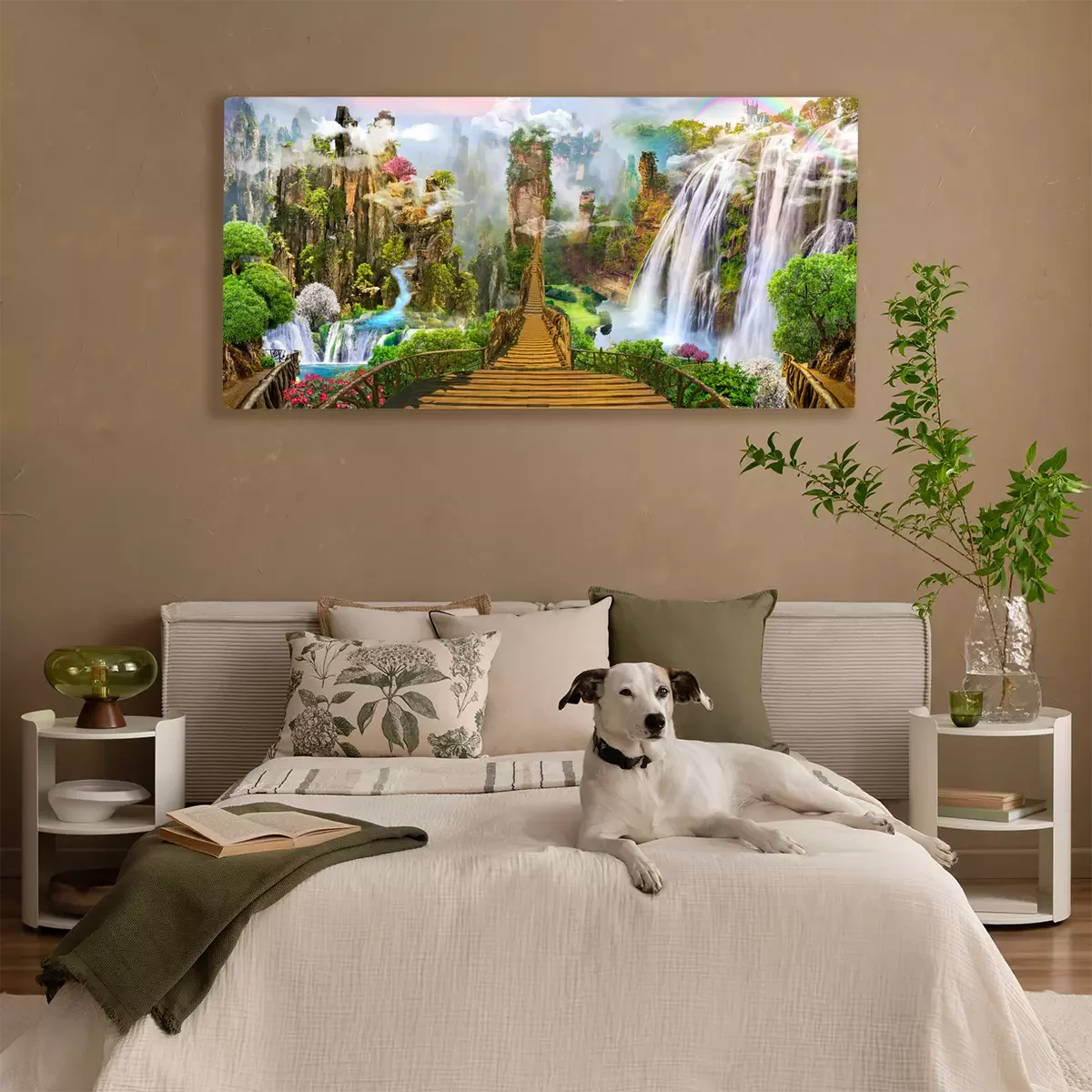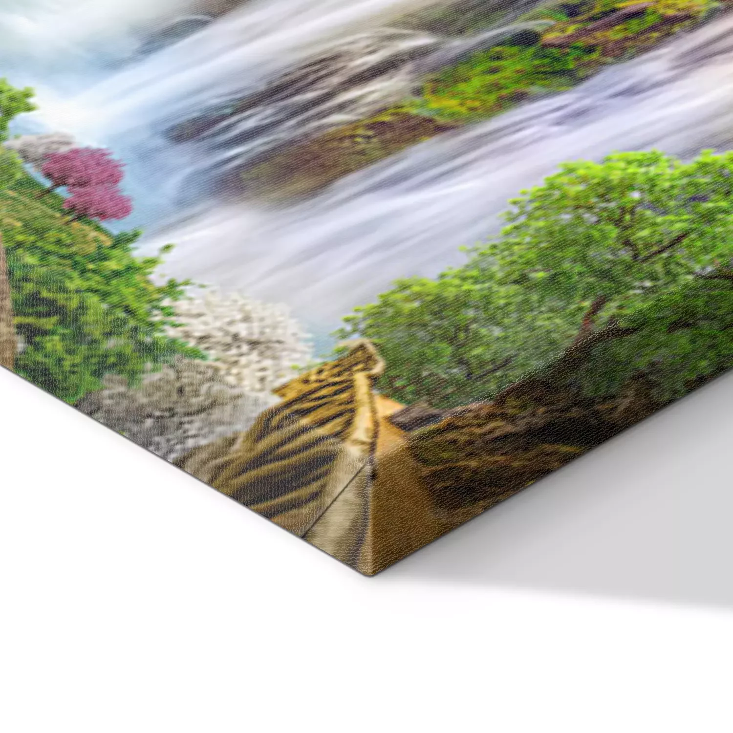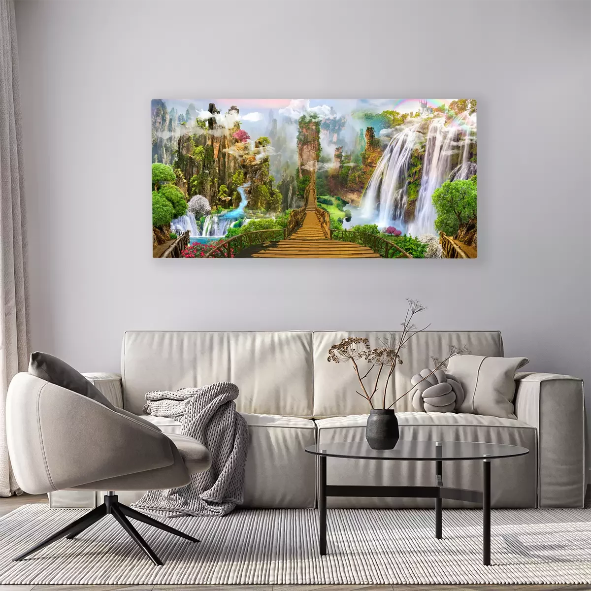 De print wordt aangebracht op hoogwaardig canvas dat op een schildersweefgetouw (spieraam) wordt gespannen. Omdat de print de zijranden bedekt, hoeft het ontwerp niet met een extra kader te worden omlijst. Wij raden ook composities aan die uit meerdere foto's bestaan en zo een coherente compositie vormen.