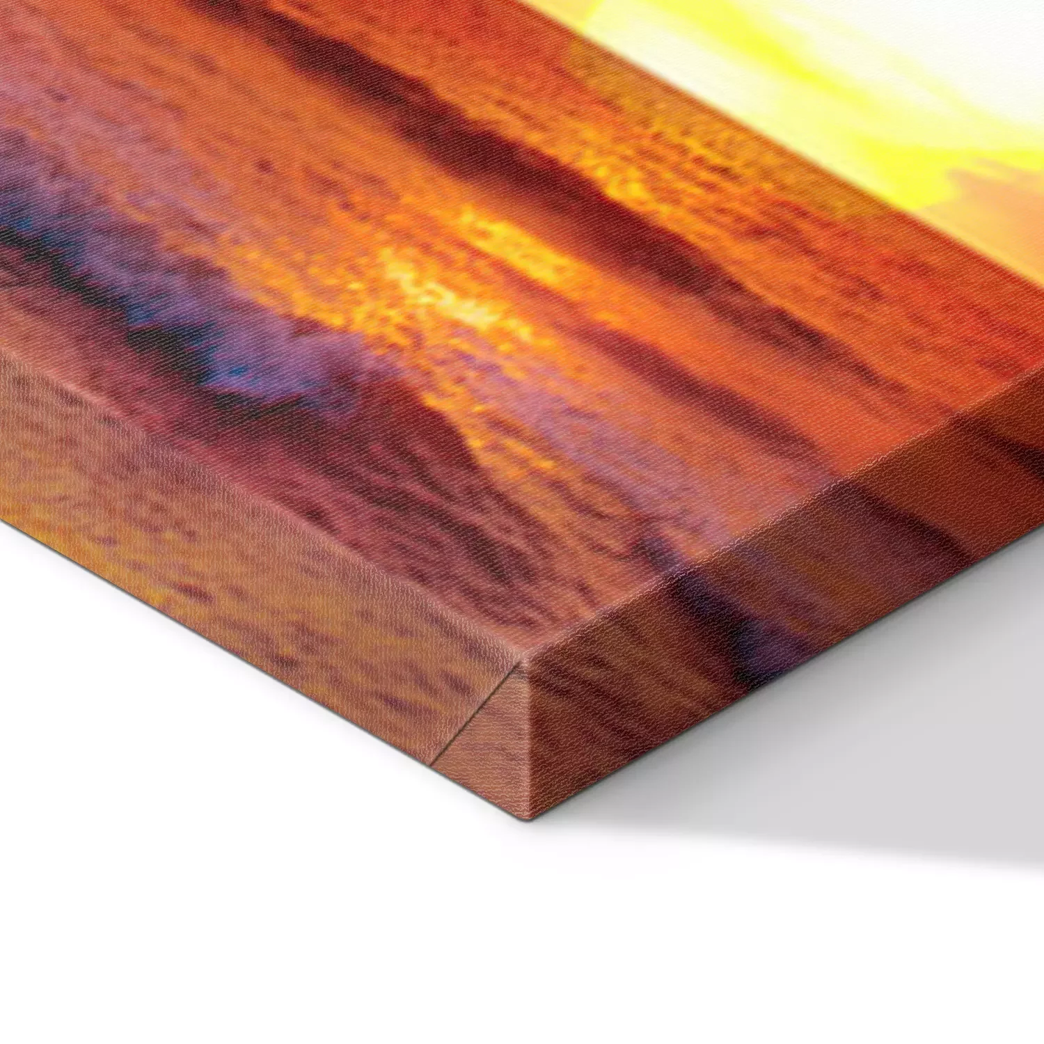 De print wordt aangebracht op hoogwaardig canvas dat op een schildersweefgetouw (spieraam) wordt gespannen. Omdat de print de zijranden bedekt, hoeft het ontwerp niet met een extra kader te worden omlijst. Wij raden ook composities aan die uit meerdere foto's bestaan en zo een coherente compositie vormen.