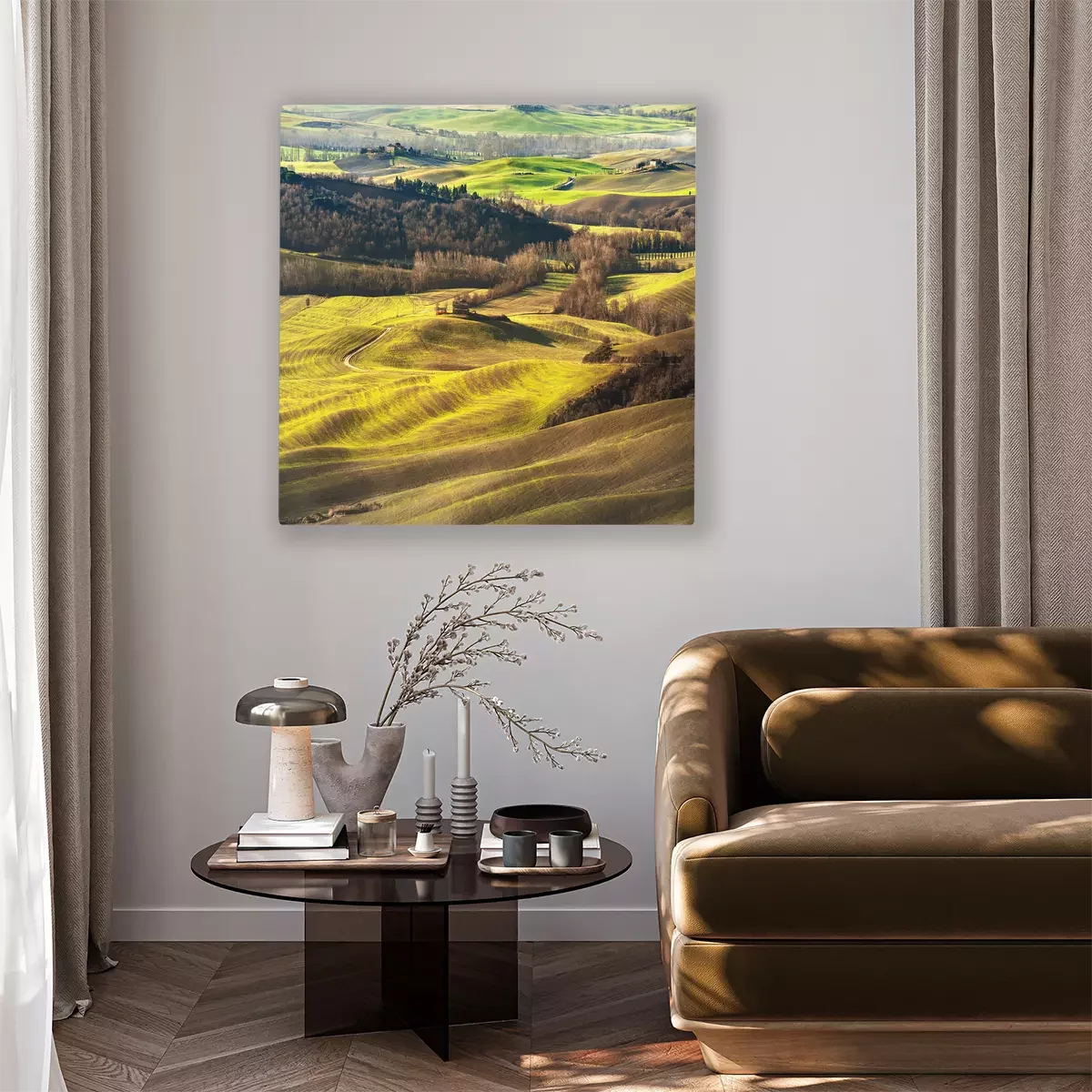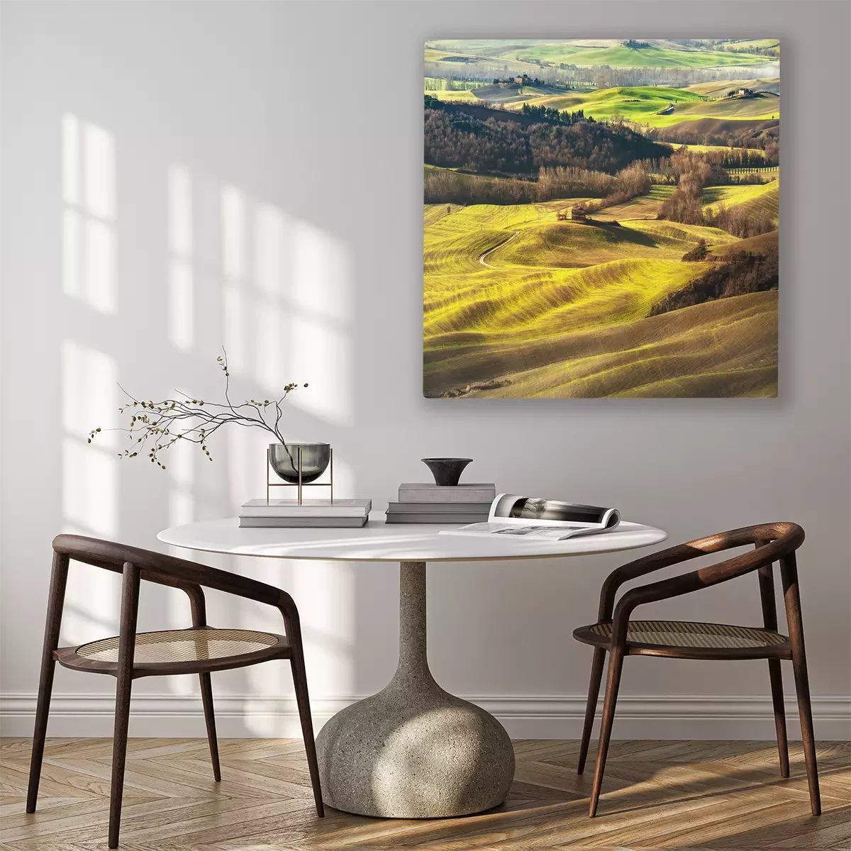 Canvas: Fantastisch landschap geschilderd licht in Toscane met lange schaduwen