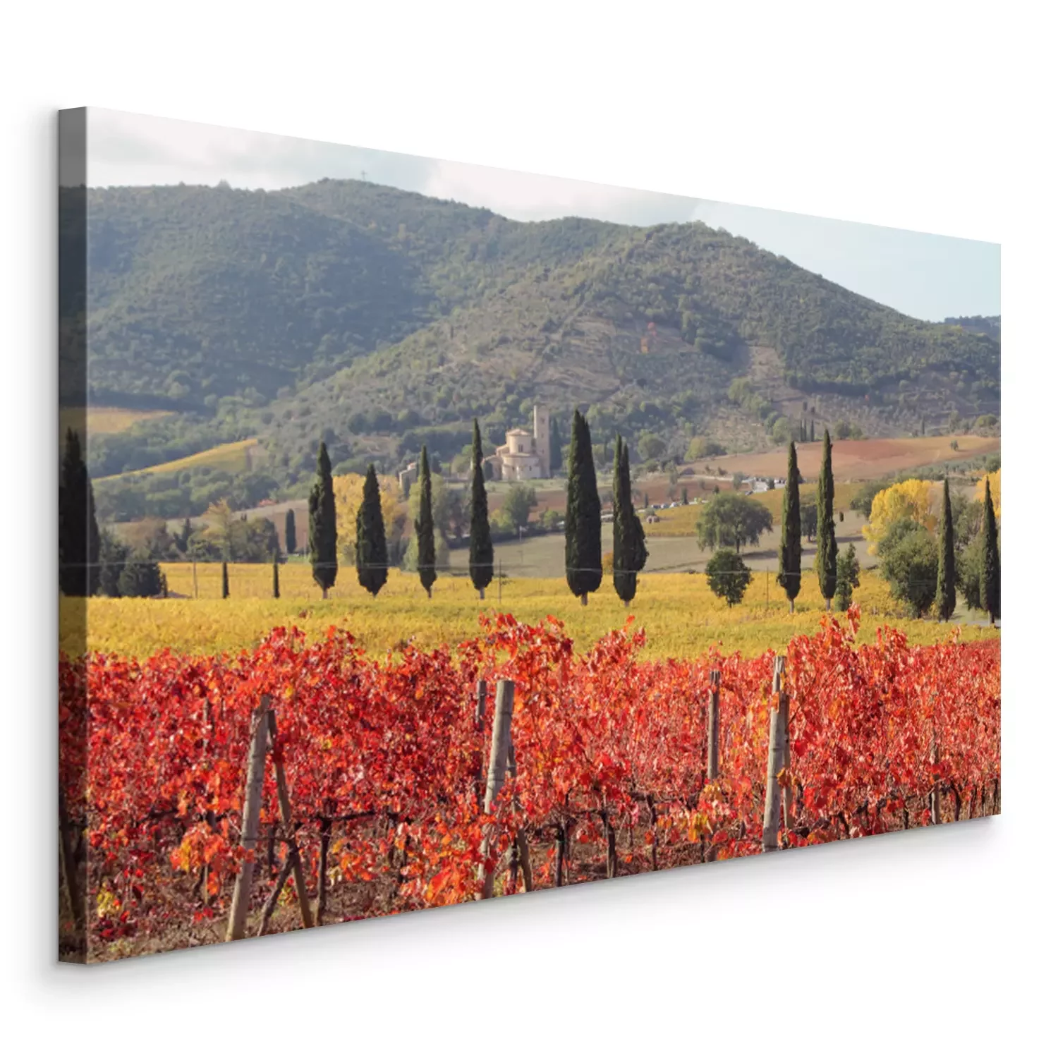Canvas: Fantastisch landschap van de Toscaanse wijngaarden in de herfst