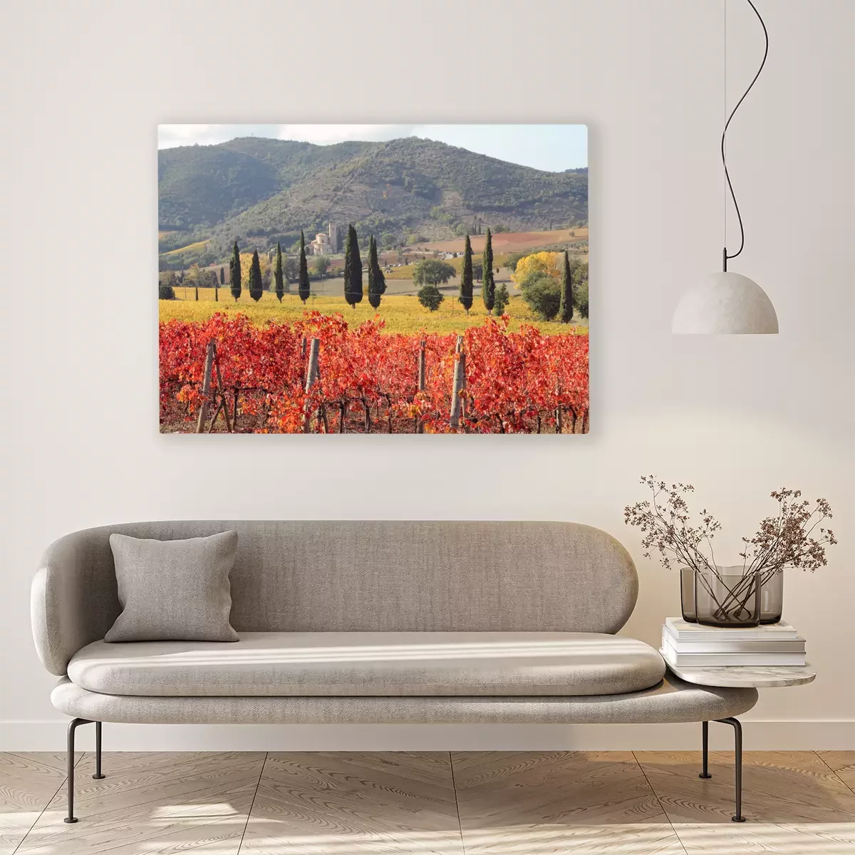 Canvas Fantastisch landschap van de Toscaanse wijngaarden in de herfst