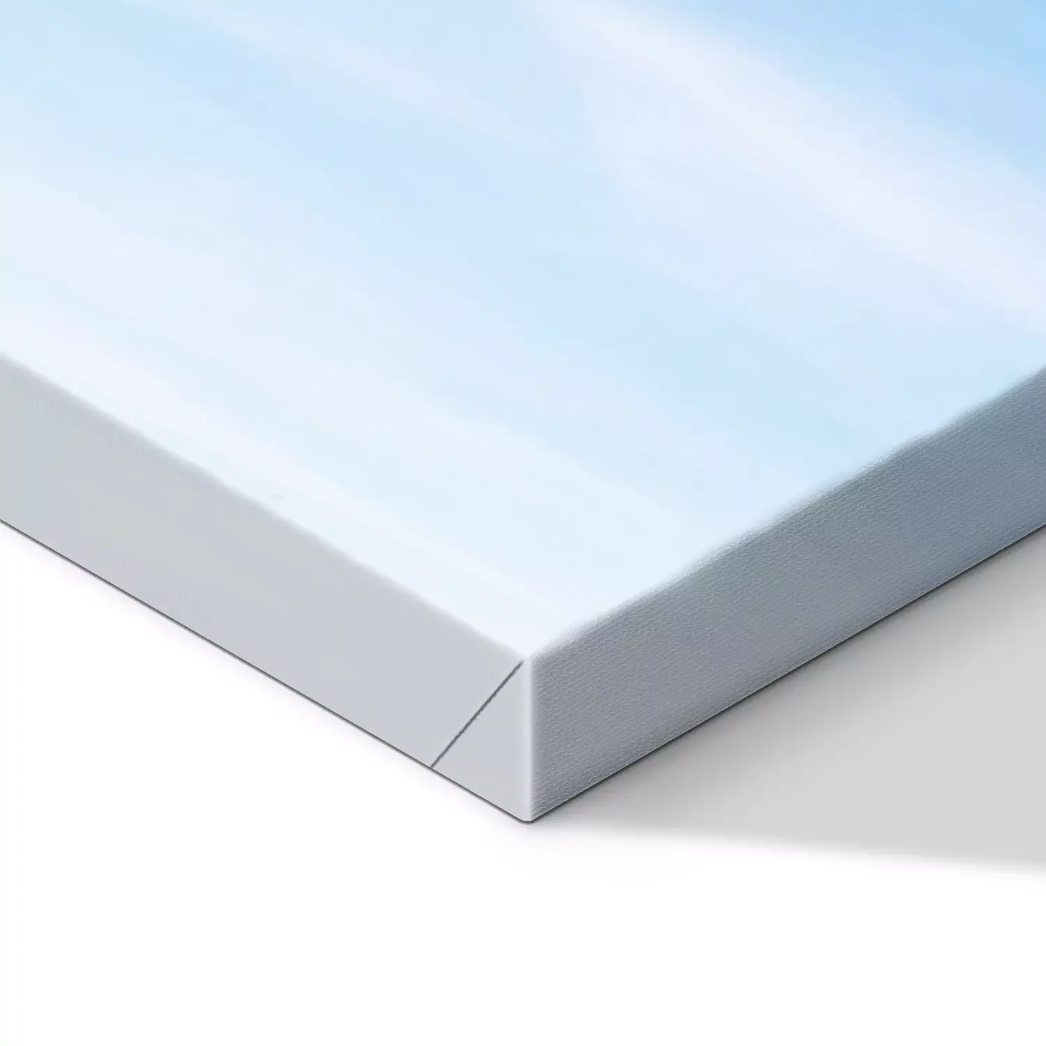 De print wordt aangebracht op hoogwaardig canvas dat op een schildersweefgetouw (spieraam) wordt gespannen. Omdat de print de zijranden bedekt, hoeft het ontwerp niet met een extra kader te worden omlijst. Wij raden ook composities aan die uit meerdere foto's bestaan en zo een coherente compositie vormen.
