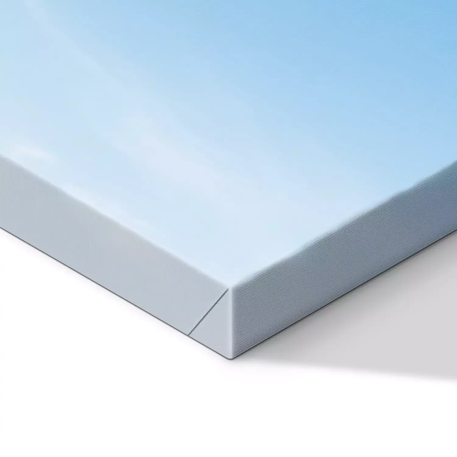 De print wordt aangebracht op hoogwaardig canvas dat op een schildersweefgetouw (spieraam) wordt gespannen. Omdat de print de zijranden bedekt, hoeft het ontwerp niet met een extra kader te worden omlijst. Wij raden ook composities aan die uit meerdere foto's bestaan en zo een coherente compositie vormen.