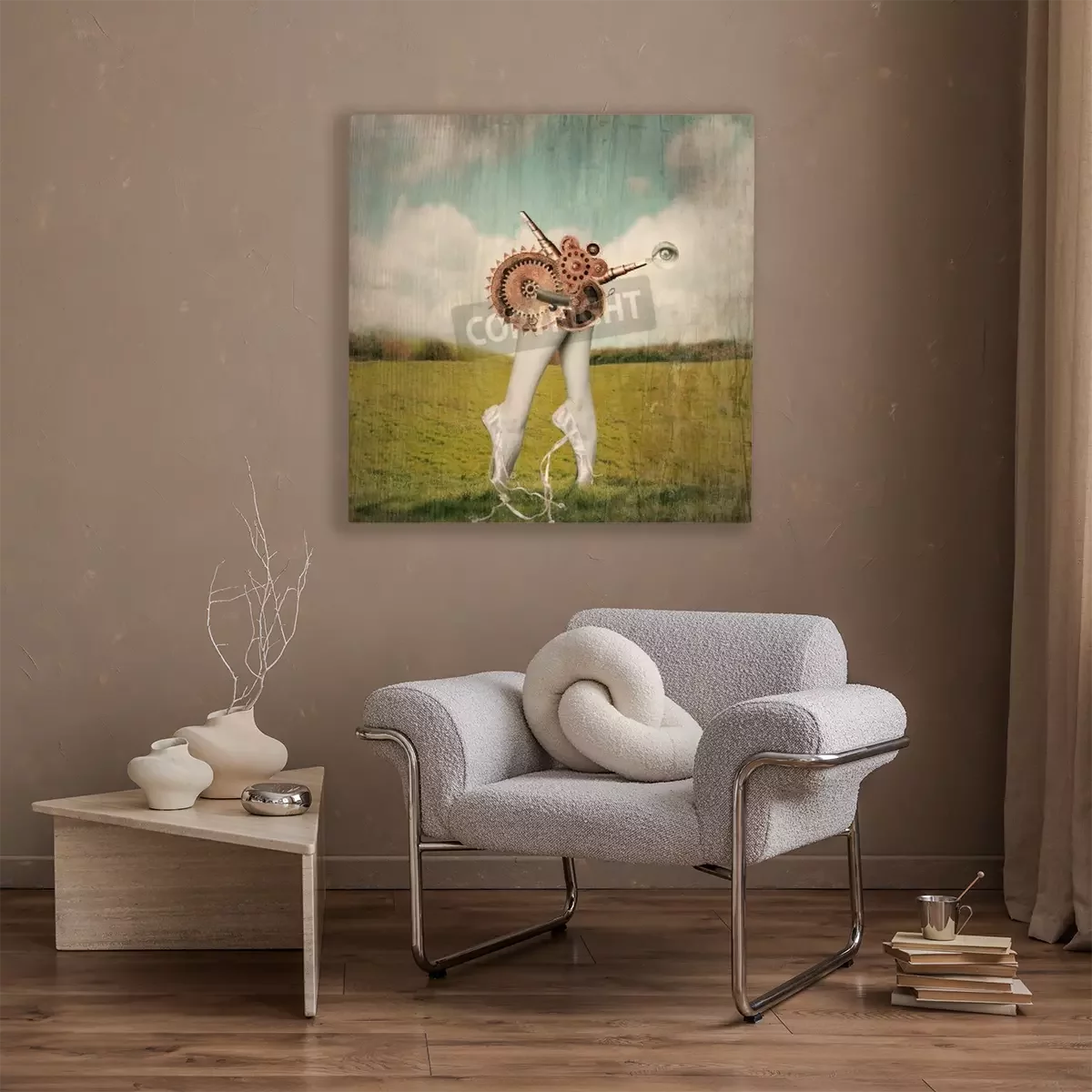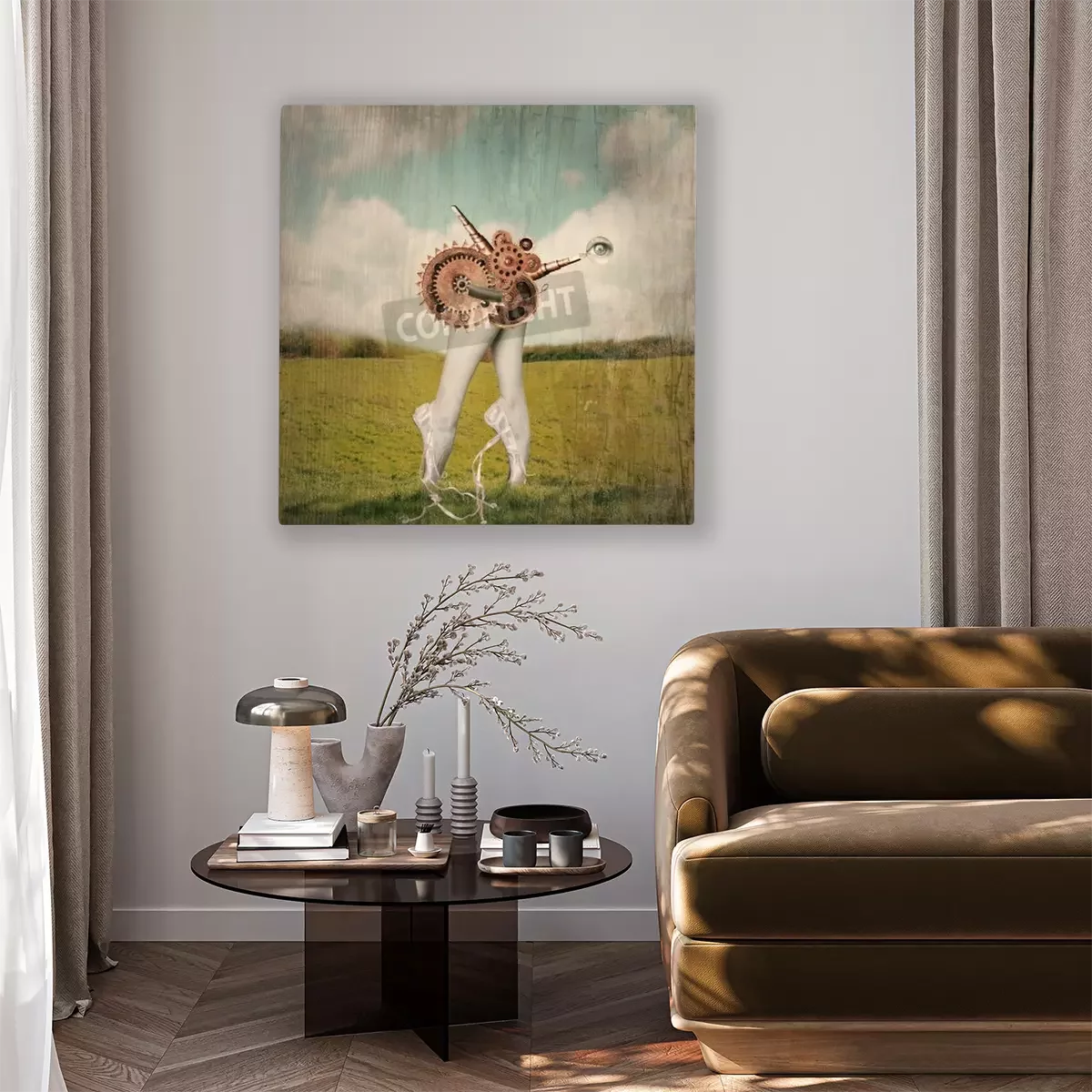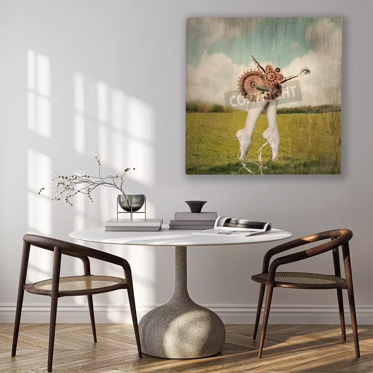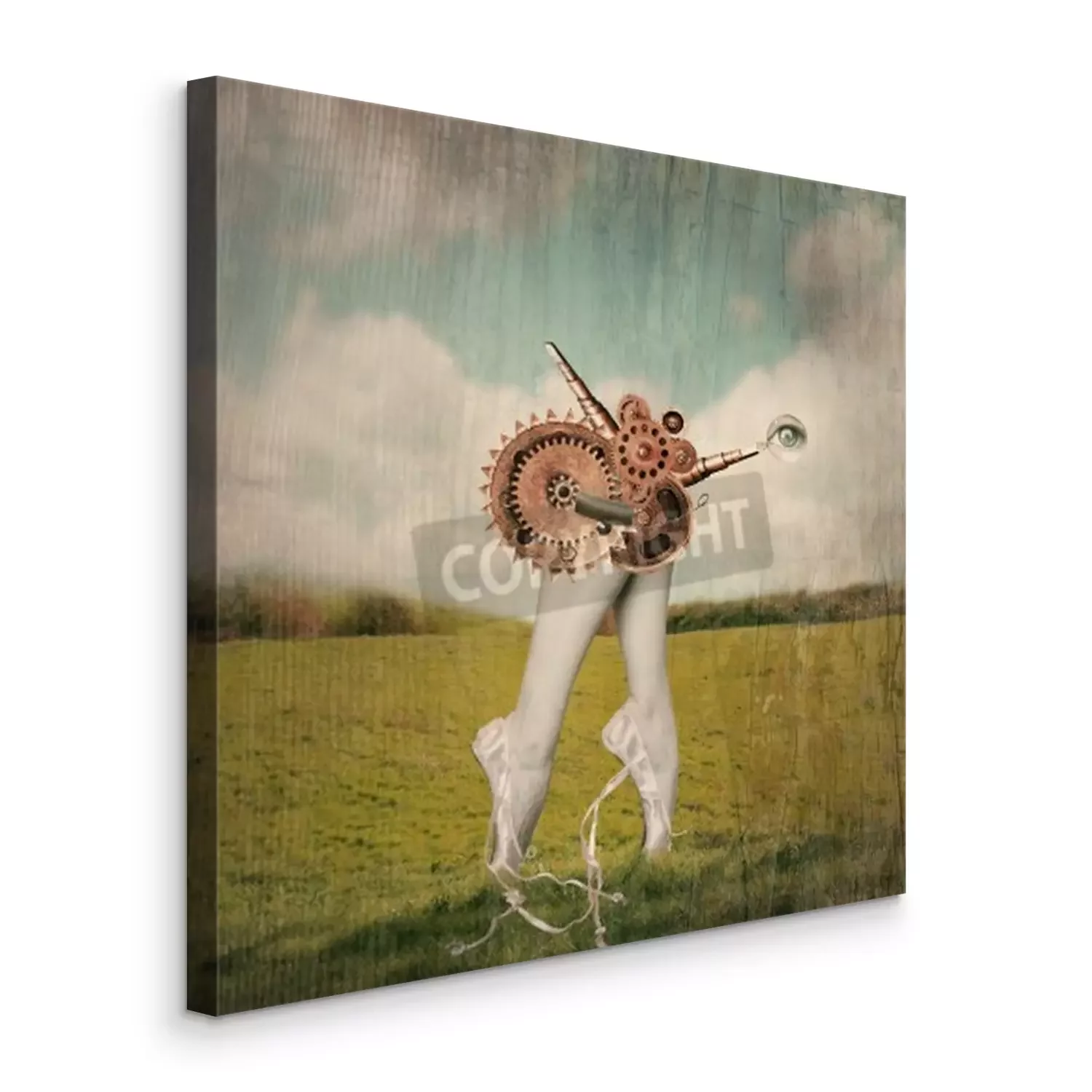 Canvas: Fantasy artistieke afbeelding die vertegenwoordigen voeten tenen en kuiten van een klassieke ballerina in een ballet slippers met een surrealistische mechanisme van tandwielen die verondersteld om ze