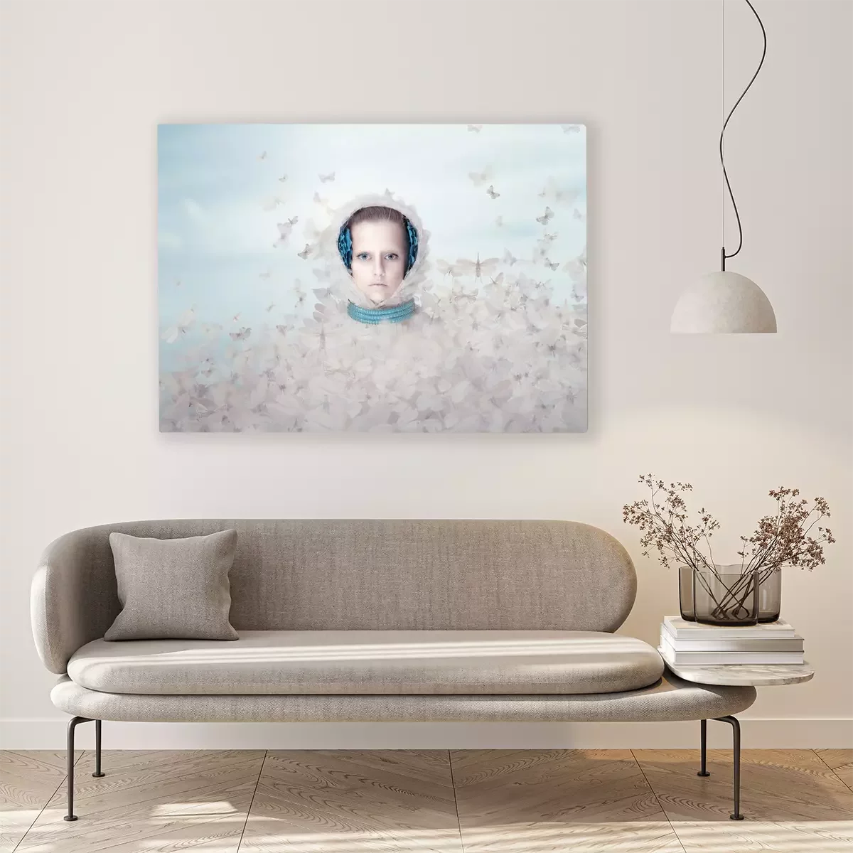 Canvas: Fantasy. Futuristische vrouw met vliegende vlinders