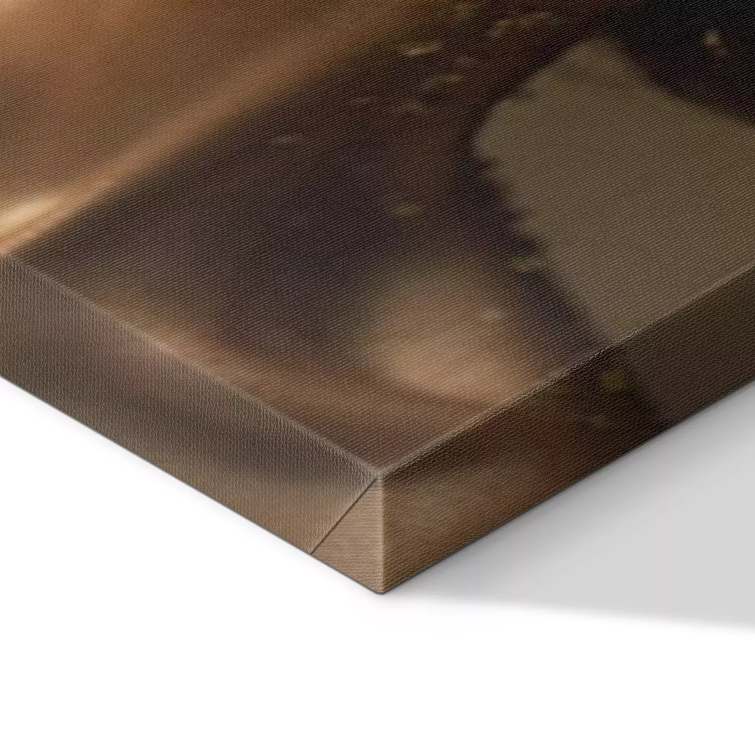 De print wordt aangebracht op hoogwaardig canvas dat op een schildersweefgetouw (spieraam) wordt gespannen. Omdat de print de zijranden bedekt, hoeft het ontwerp niet met een extra kader te worden omlijst. Wij raden ook composities aan die uit meerdere foto's bestaan en zo een coherente compositie vormen.