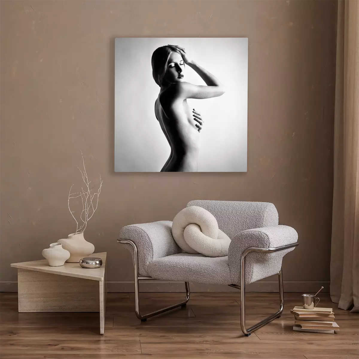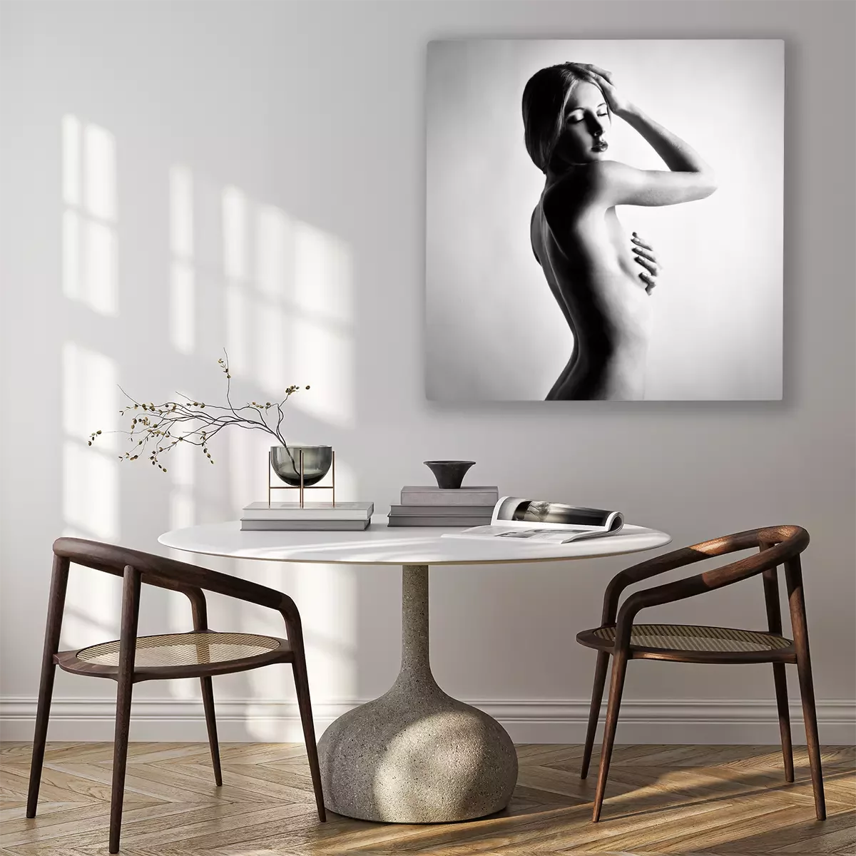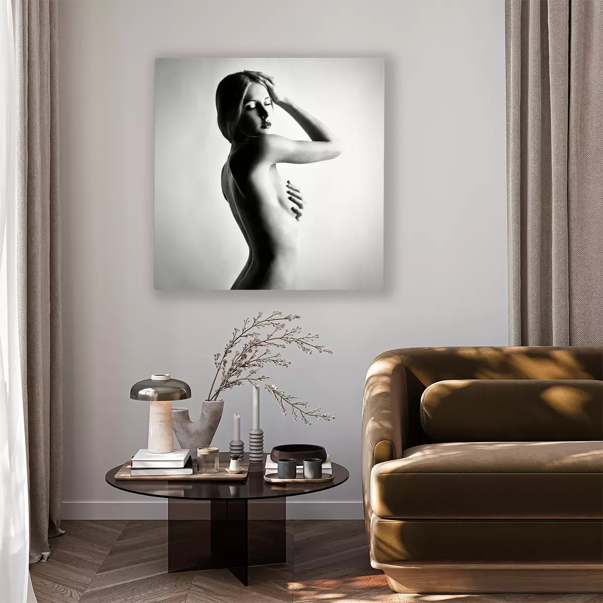 Canvas Fashion foto van prachtige naakt vrouw. Zwart en wit