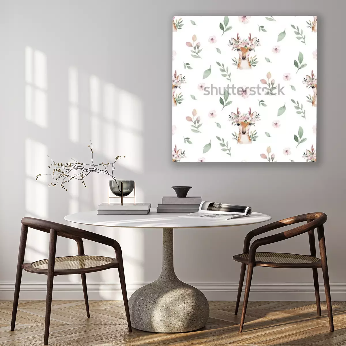 Canvas: Fawn en bloemen