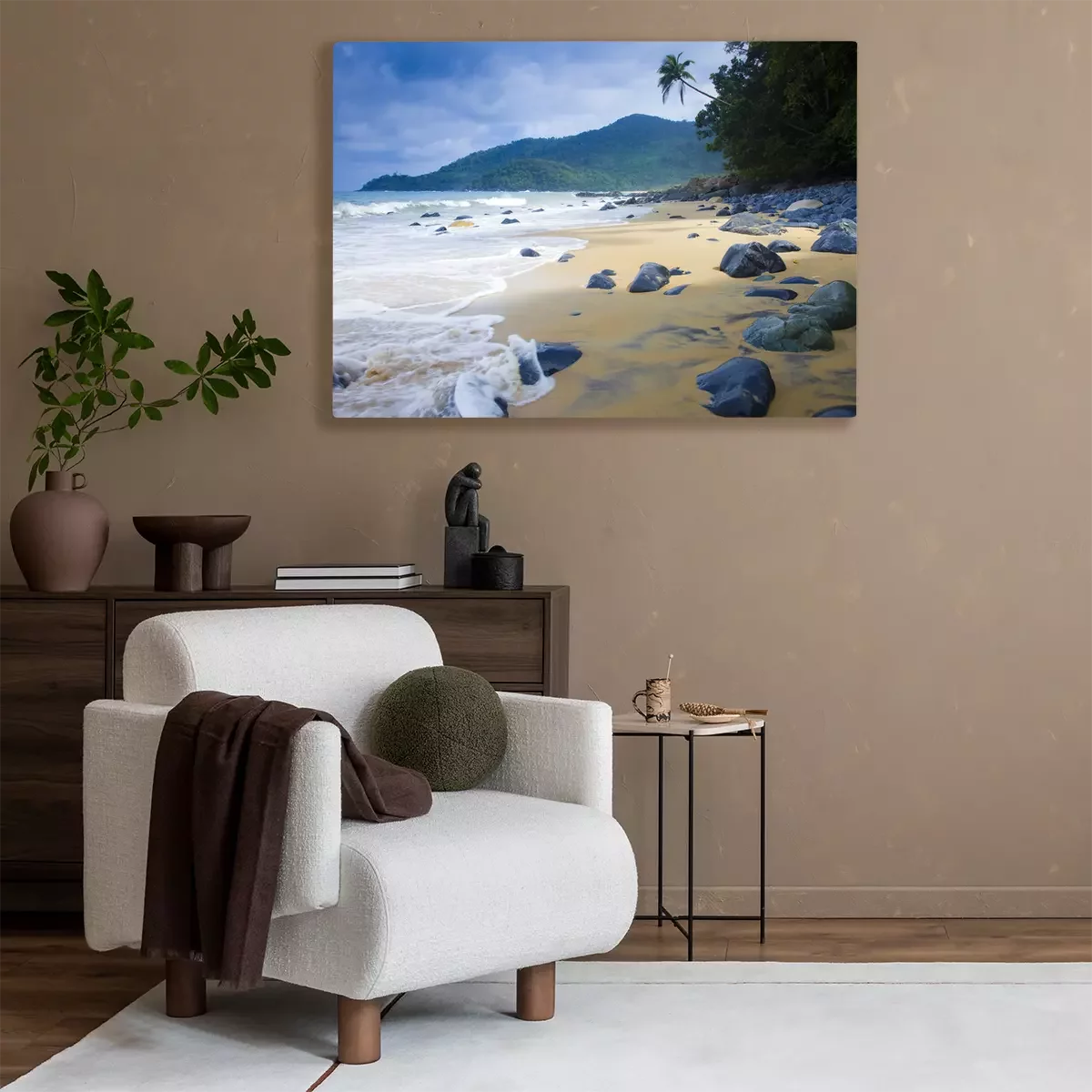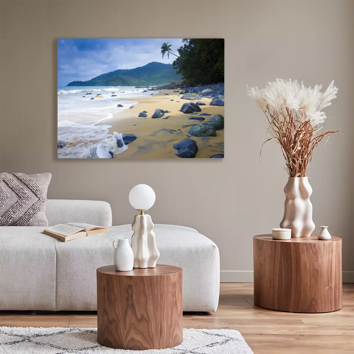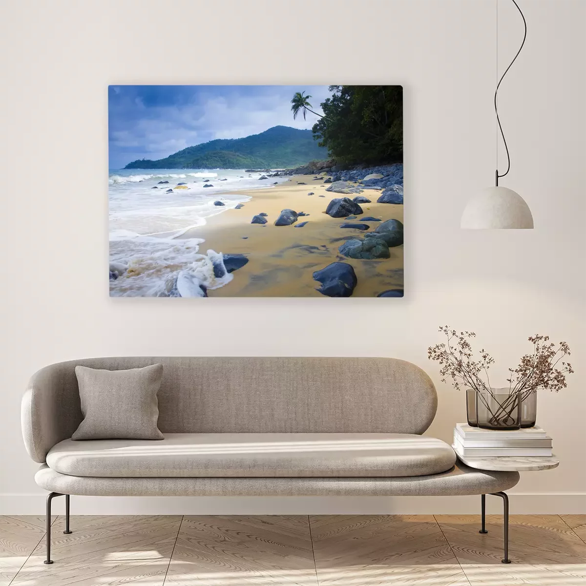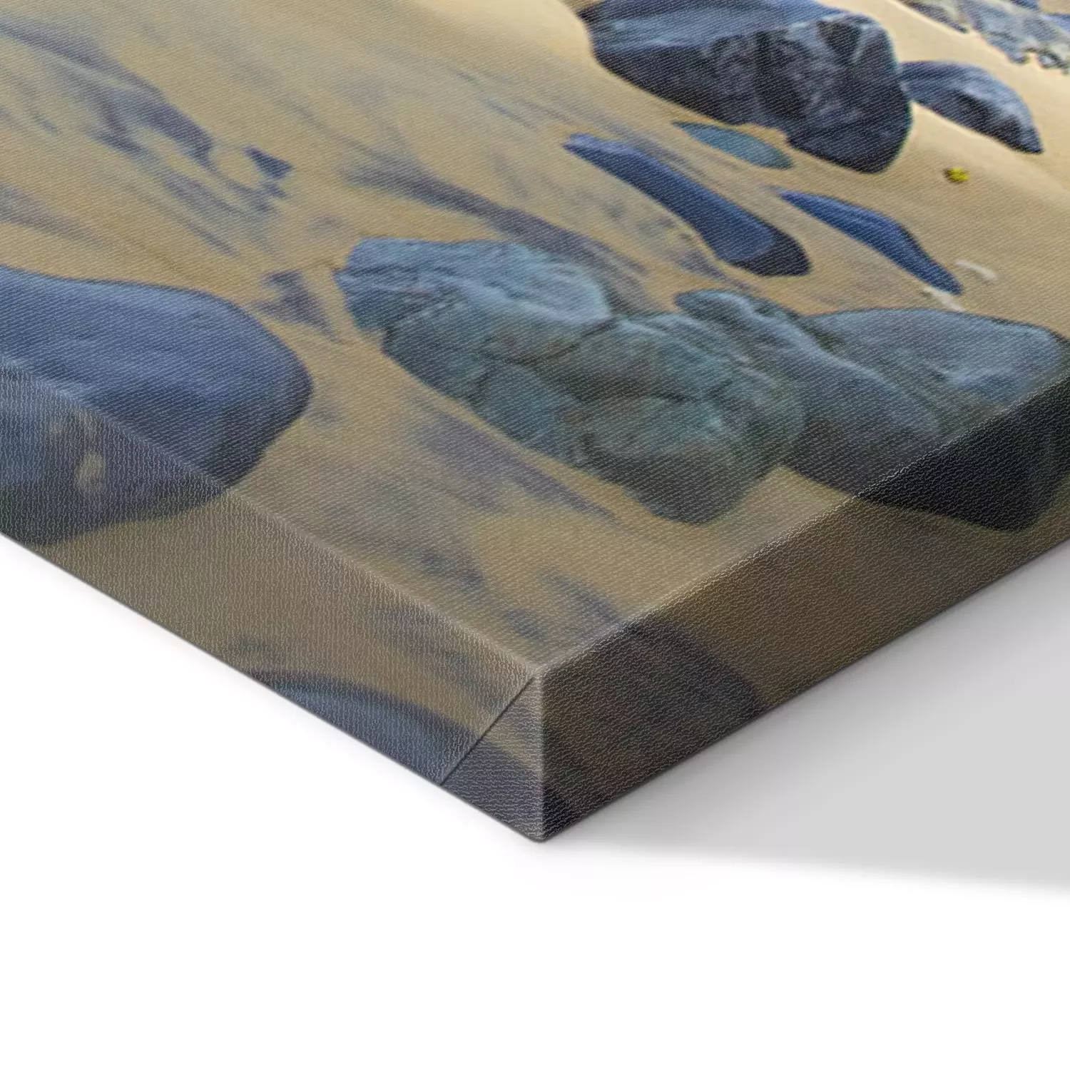 De print wordt aangebracht op hoogwaardig canvas dat op een schildersweefgetouw (spieraam) wordt gespannen. Omdat de print de zijranden bedekt, hoeft het ontwerp niet met een extra kader te worden omlijst. Wij raden ook composities aan die uit meerdere foto's bestaan en zo een coherente compositie vormen.
