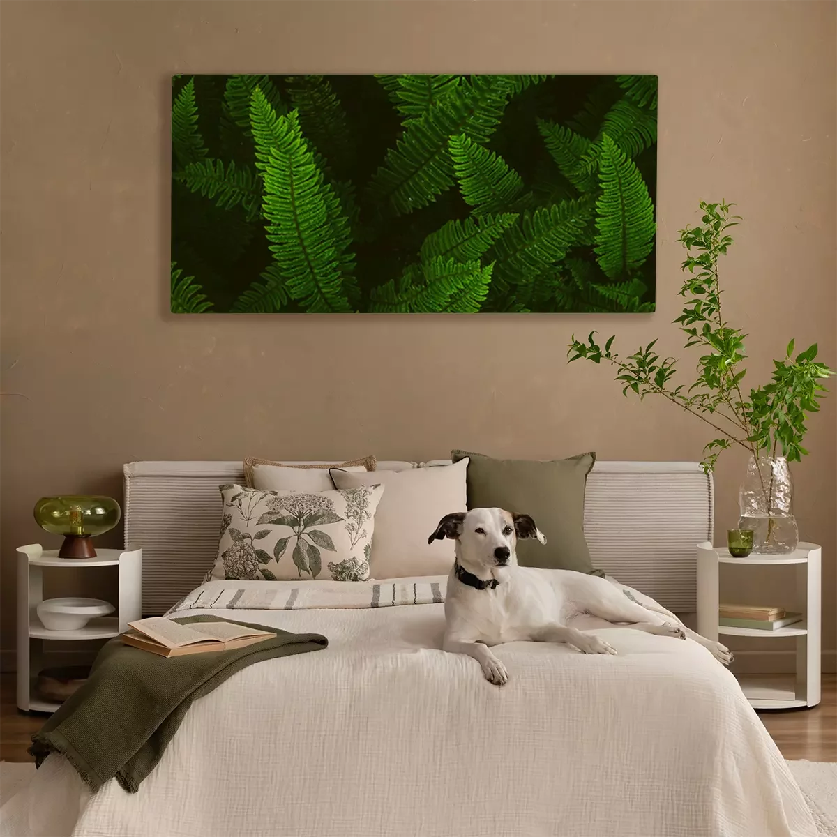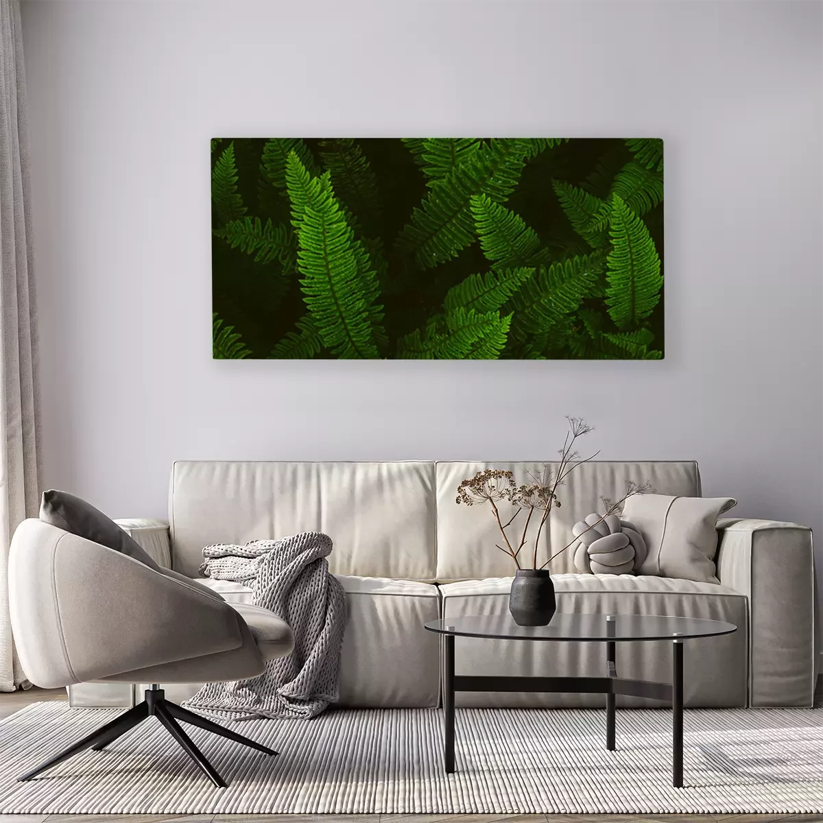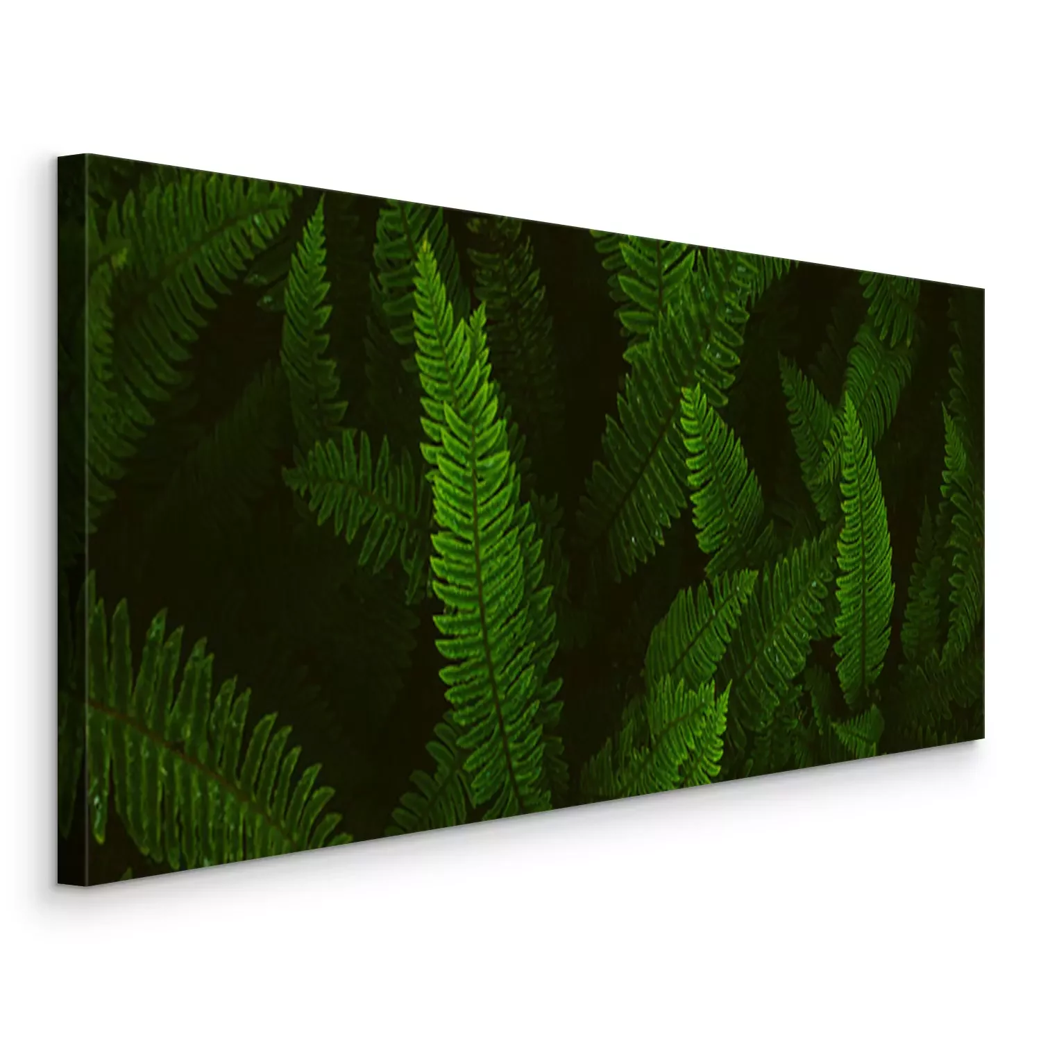 Canvas: Fern plants. Fern leaf. Green fern leaves in forest. natural texture pattern background. Tropical foliage in jungle.