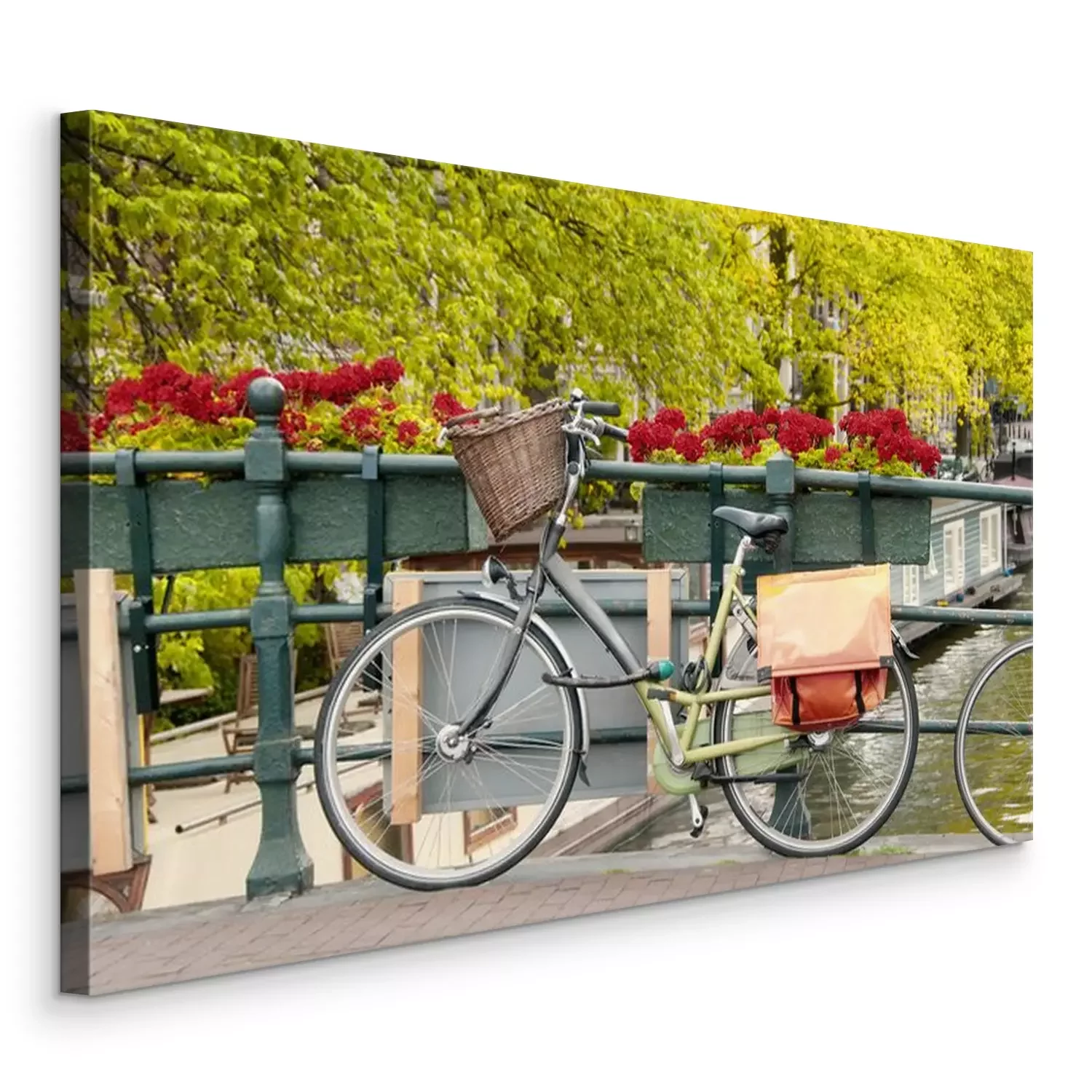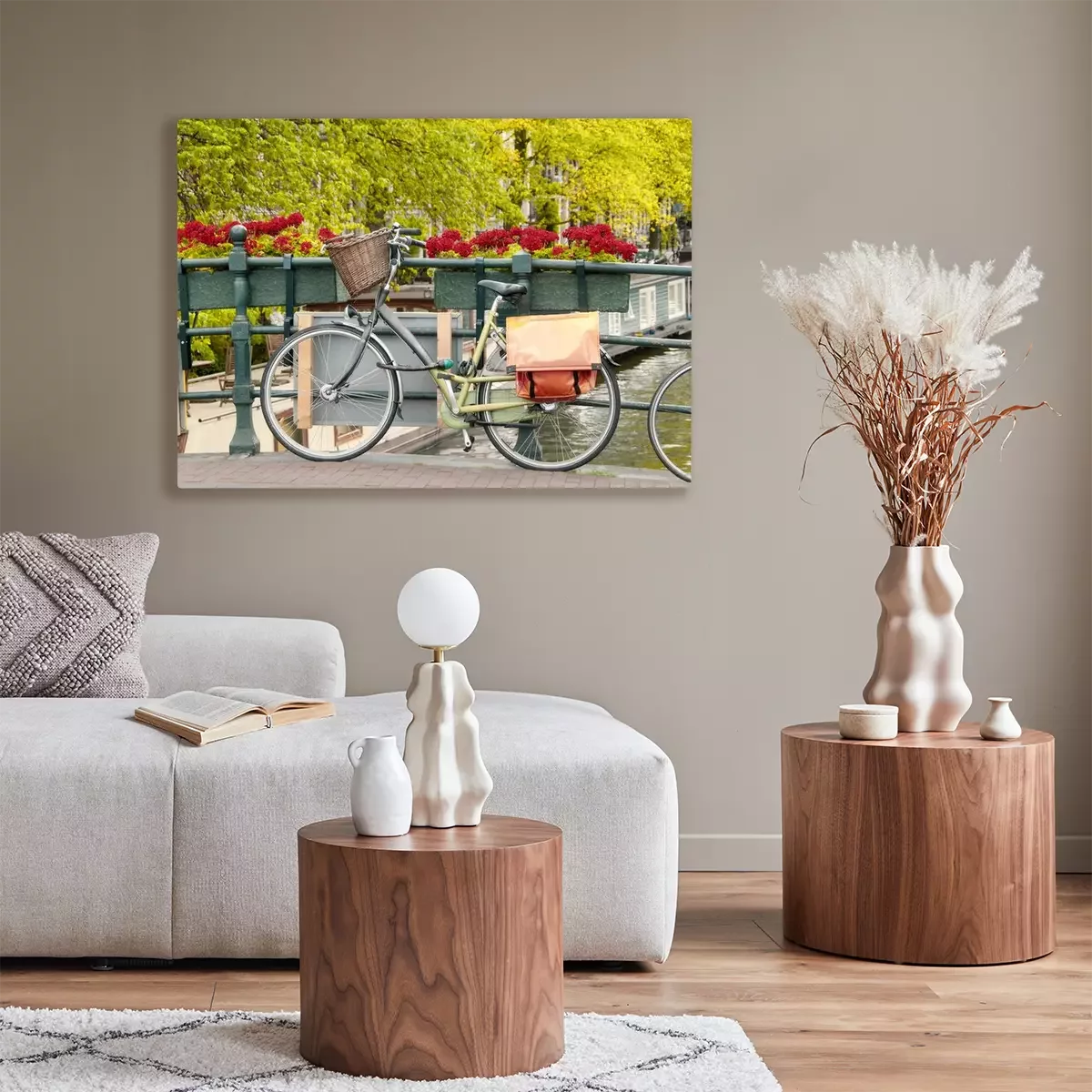 Canvas: Fiets en bloemen op de brug in Amsterdam