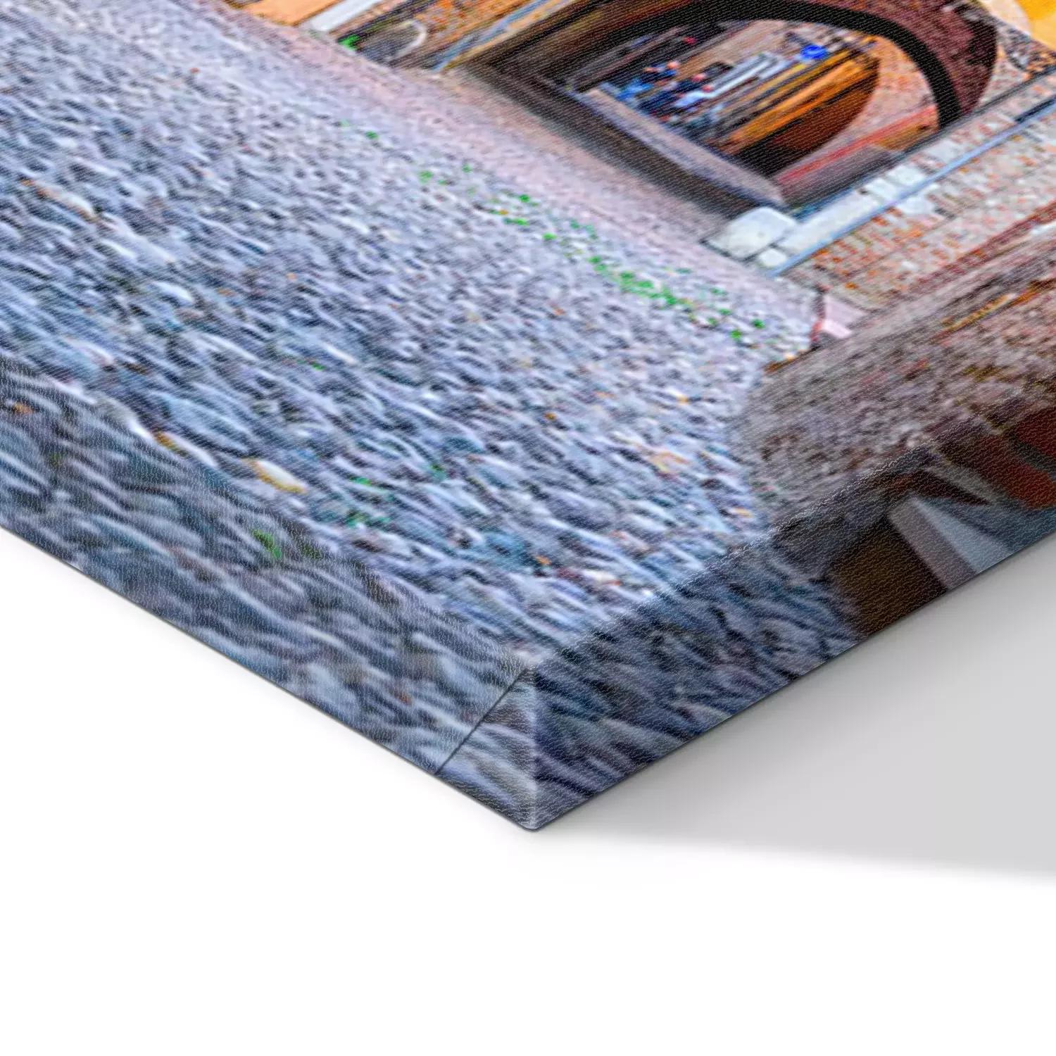 De print wordt aangebracht op hoogwaardig canvas dat op een schildersweefgetouw (spieraam) wordt gespannen. Omdat de print de zijranden bedekt, hoeft het ontwerp niet met een extra kader te worden omlijst. Wij raden ook composities aan die uit meerdere foto's bestaan en zo een coherente compositie vormen.