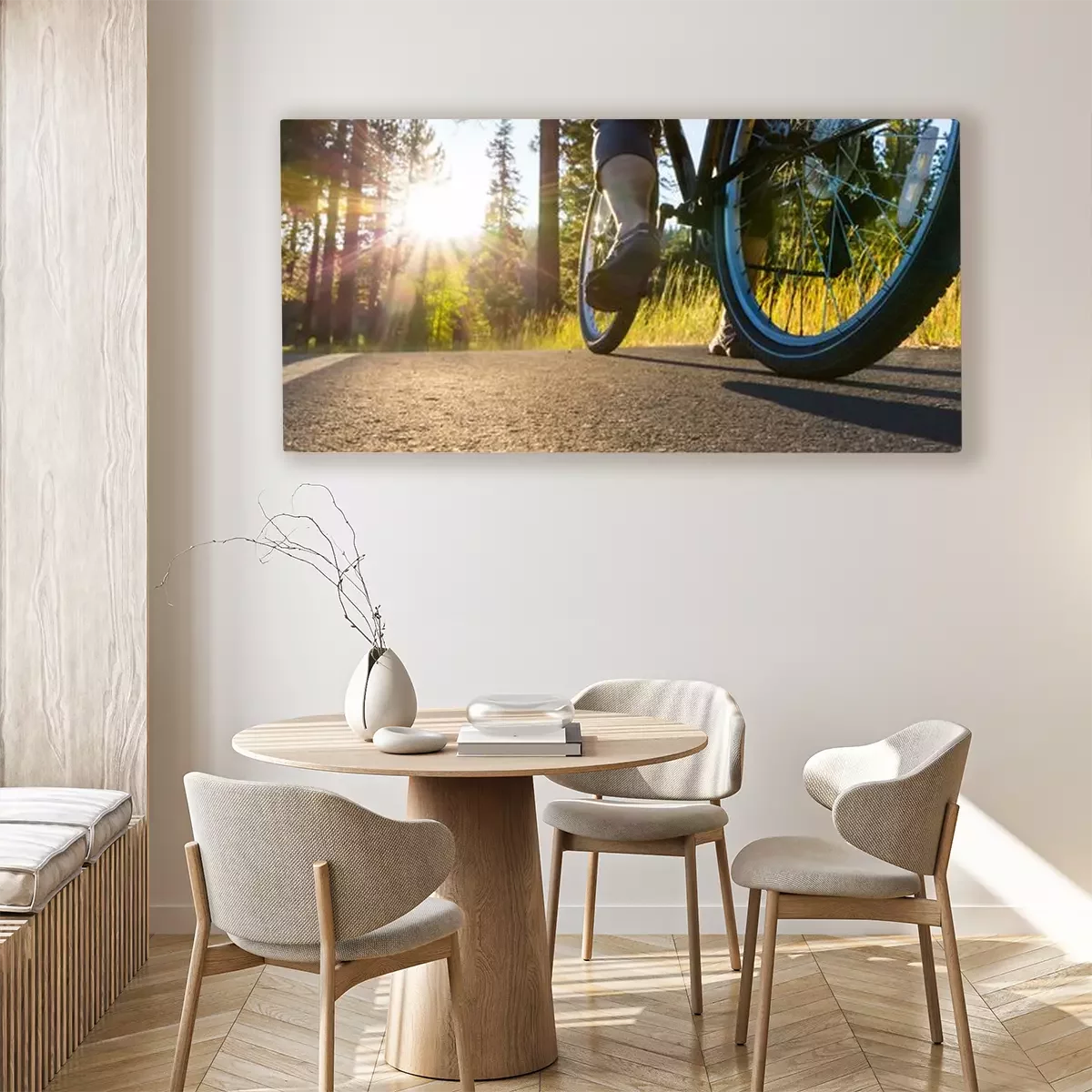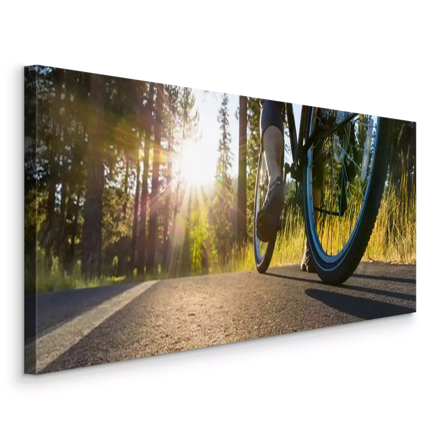 Canvas: Fiets op het asfalt weg verlicht door de zon.