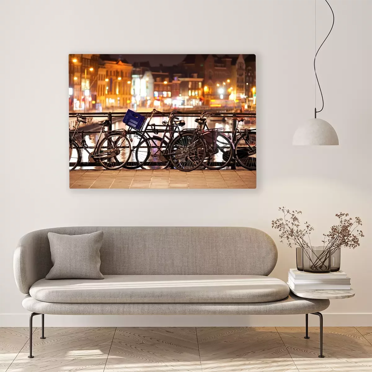De print wordt aangebracht op hoogwaardig canvas dat op een schildersweefgetouw (spieraam) wordt gespannen. Omdat de print de zijranden bedekt, hoeft het ontwerp niet met een extra kader te worden omlijst. Wij raden ook composities aan die uit meerdere foto's bestaan en zo een coherente compositie vormen.