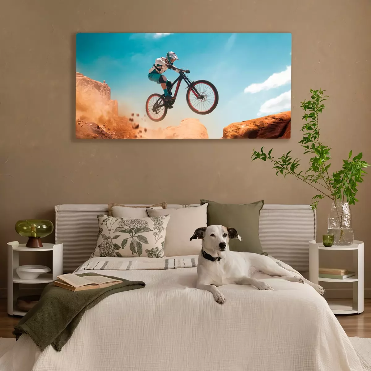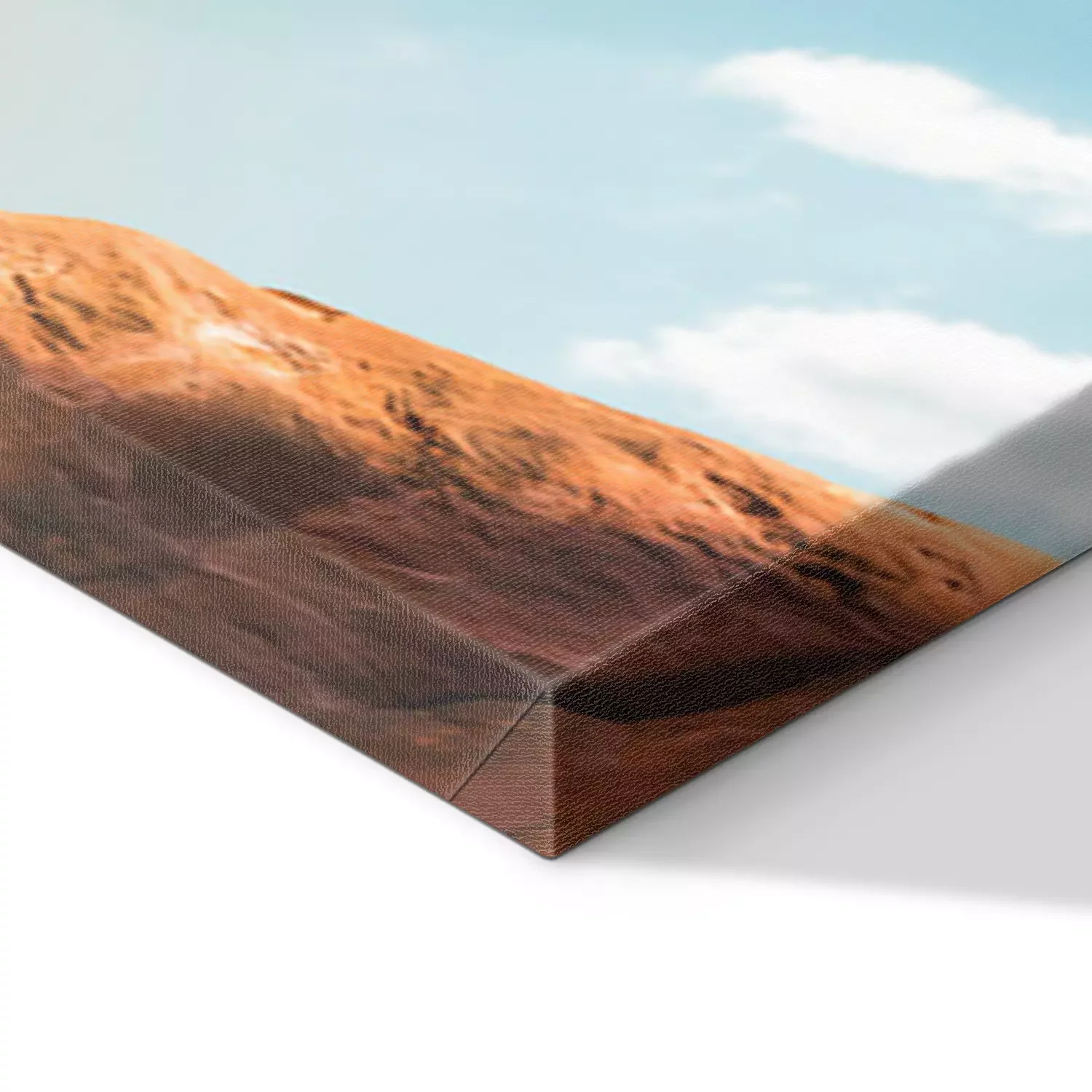 De print wordt aangebracht op hoogwaardig canvas dat op een schildersweefgetouw (spieraam) wordt gespannen. Omdat de print de zijranden bedekt, hoeft het ontwerp niet met een extra kader te worden omlijst. Wij raden ook composities aan die uit meerdere foto's bestaan en zo een coherente compositie vormen.