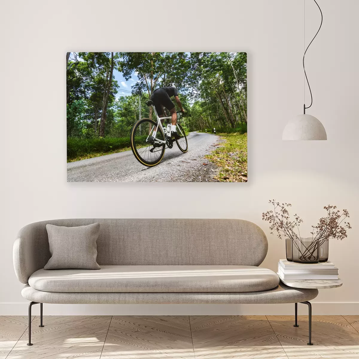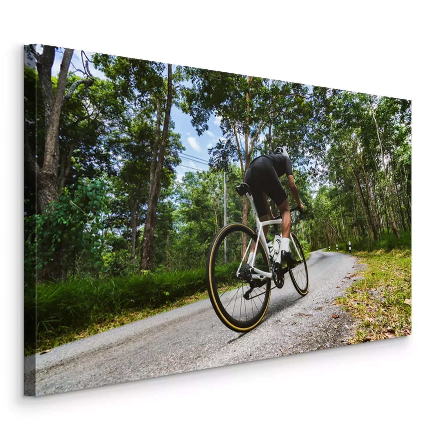 Canvas: Fietser Hij fietste bergopwaarts in het bos.