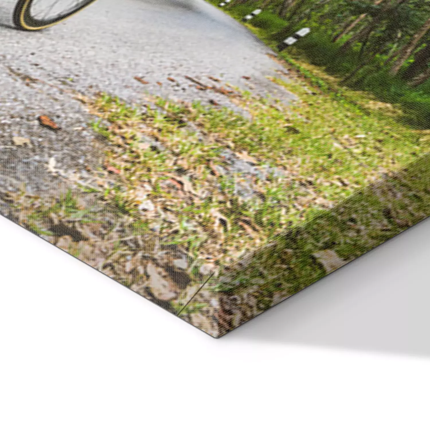 De print wordt aangebracht op hoogwaardig canvas dat op een schildersweefgetouw (spieraam) wordt gespannen. Omdat de print de zijranden bedekt, hoeft het ontwerp niet met een extra kader te worden omlijst. Wij raden ook composities aan die uit meerdere foto's bestaan en zo een coherente compositie vormen.
