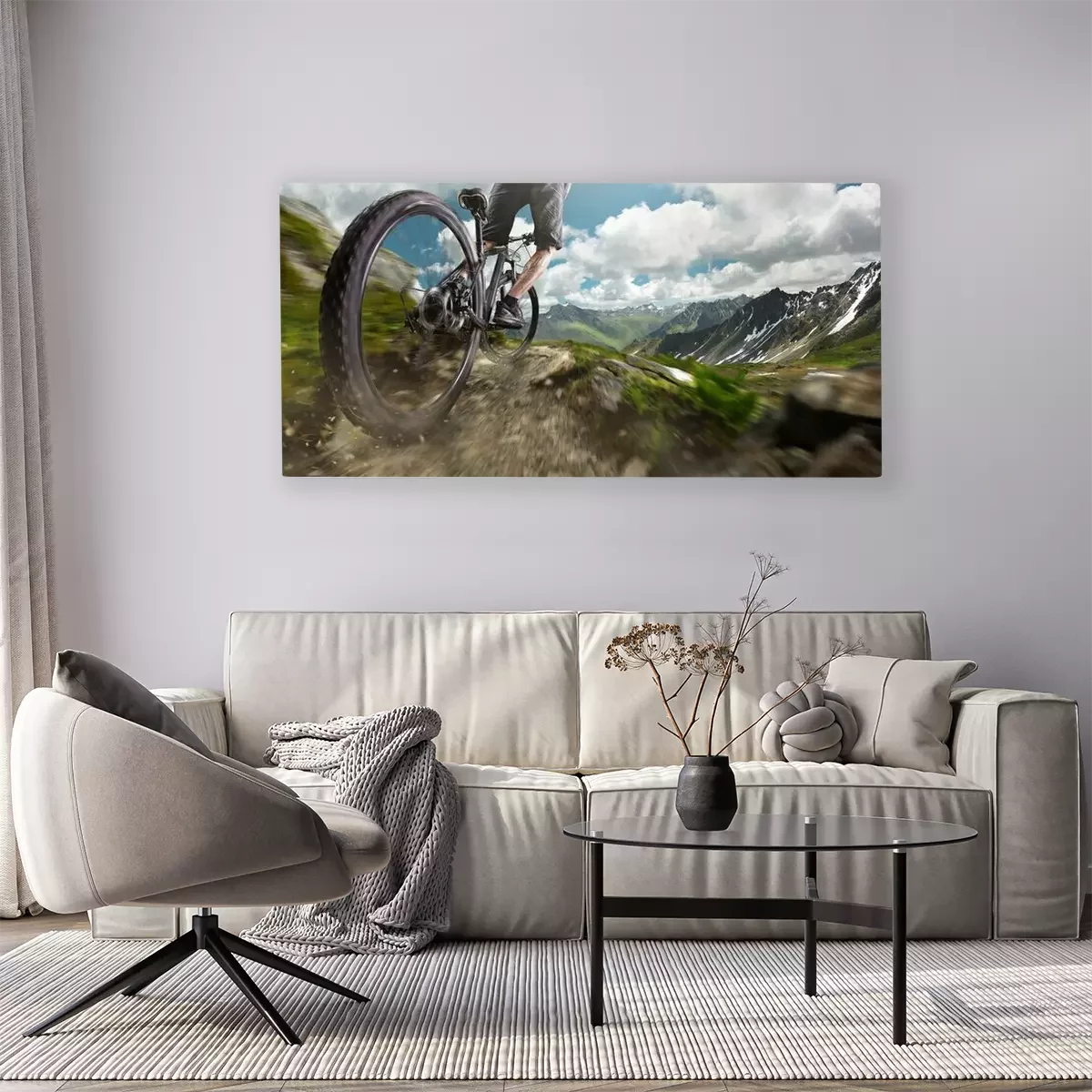 De print wordt aangebracht op hoogwaardig canvas dat op een schildersweefgetouw (spieraam) wordt gespannen. Omdat de print de zijranden bedekt, hoeft het ontwerp niet met een extra kader te worden omlijst. Wij raden ook composities aan die uit meerdere foto's bestaan en zo een coherente compositie vormen.