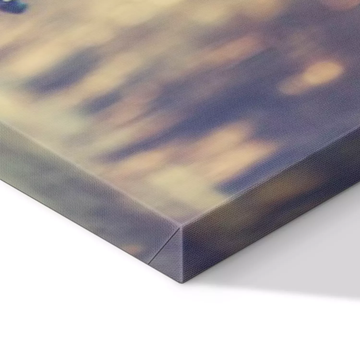 De print wordt aangebracht op hoogwaardig canvas dat op een schildersweefgetouw (spieraam) wordt gespannen. Omdat de print de zijranden bedekt, hoeft het ontwerp niet met een extra kader te worden omlijst. Wij raden ook composities aan die uit meerdere foto's bestaan en zo een coherente compositie vormen.