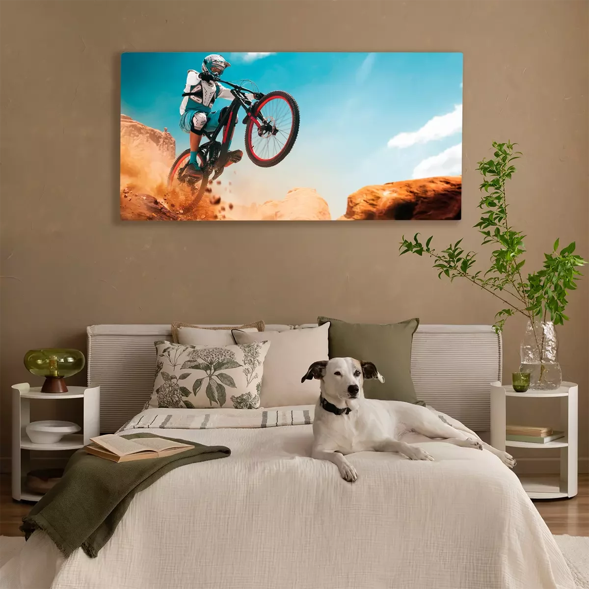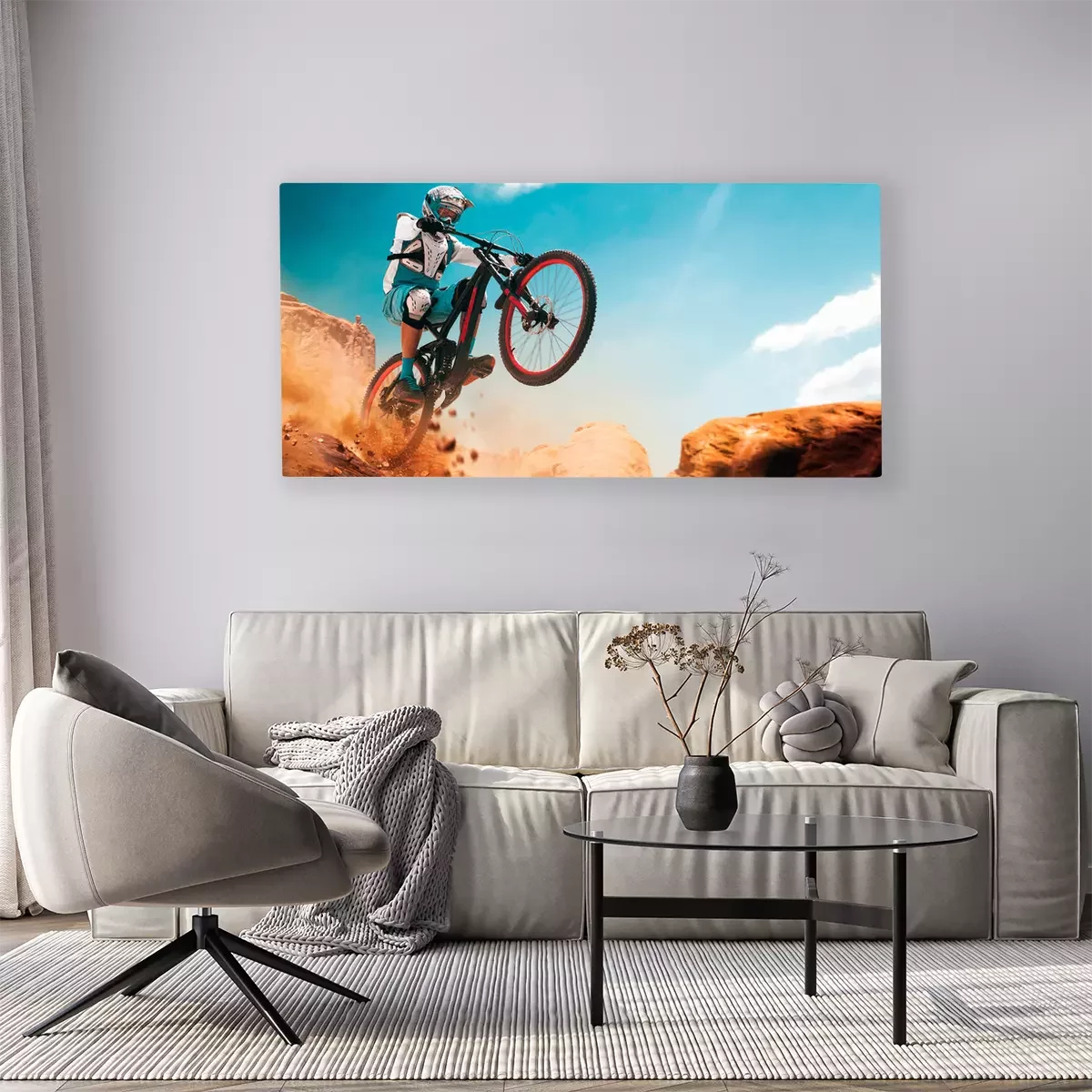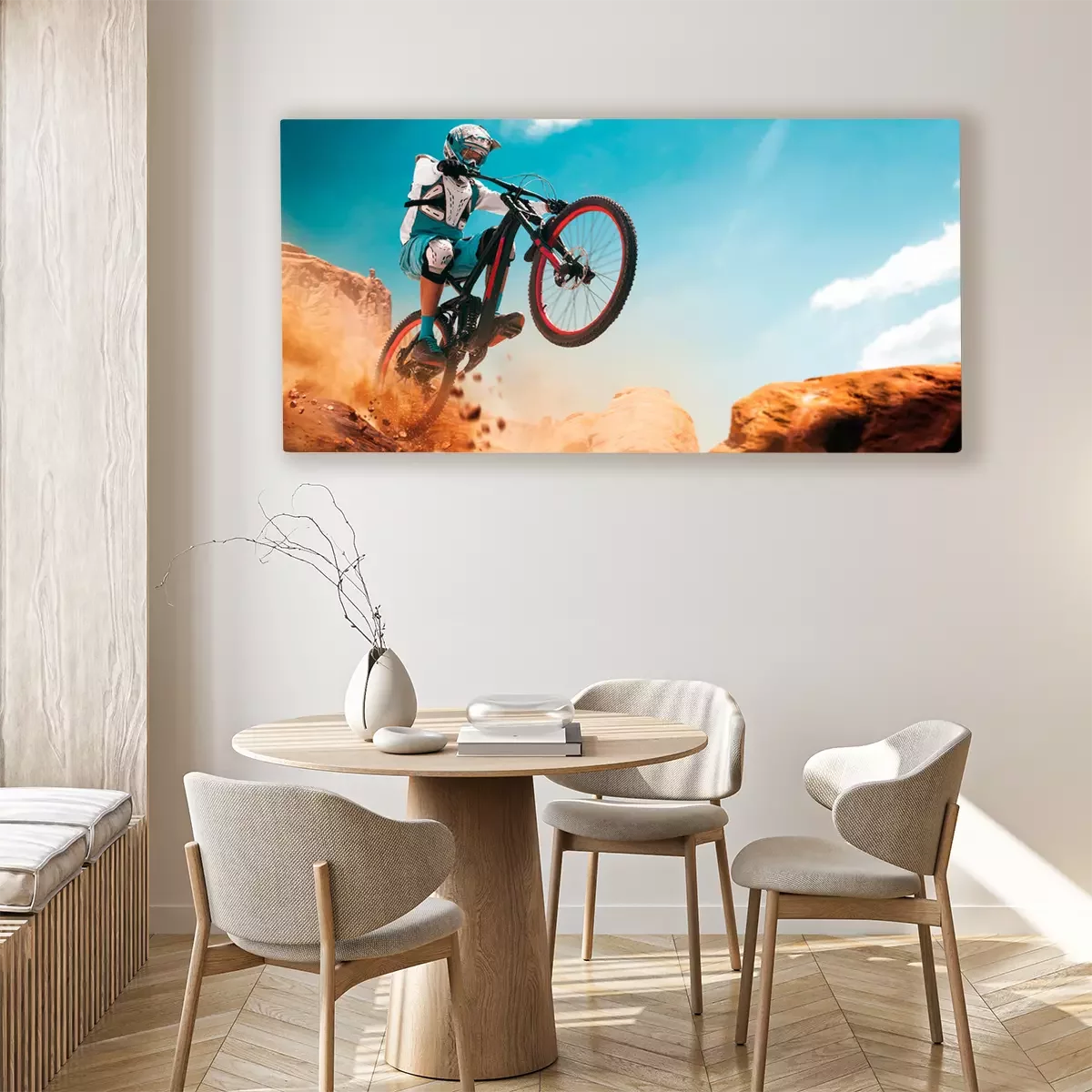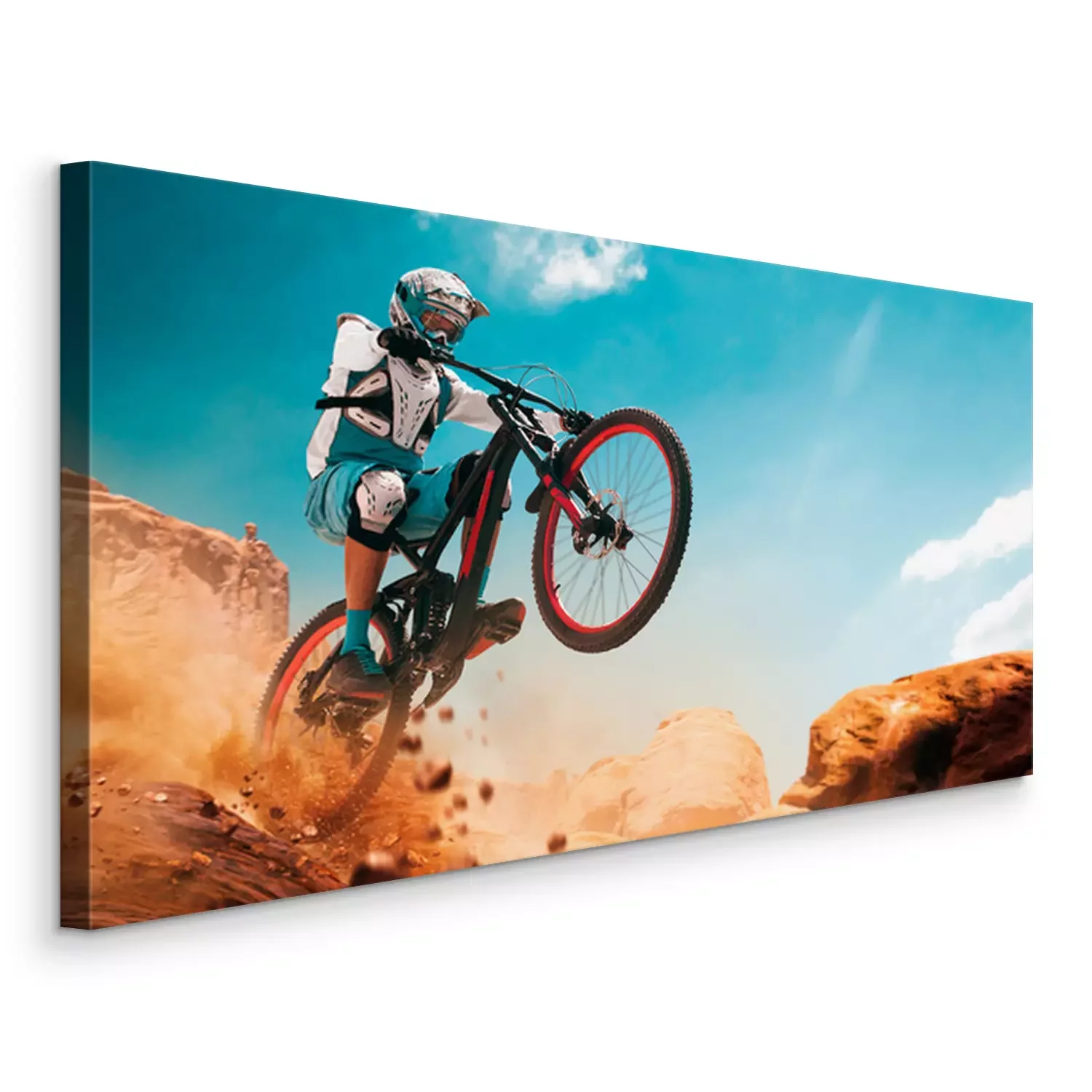 Canvas Fietser op een fiets. Downhill.