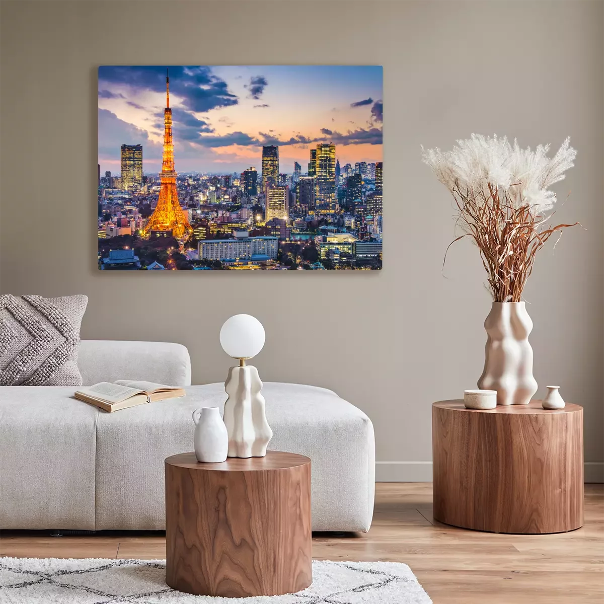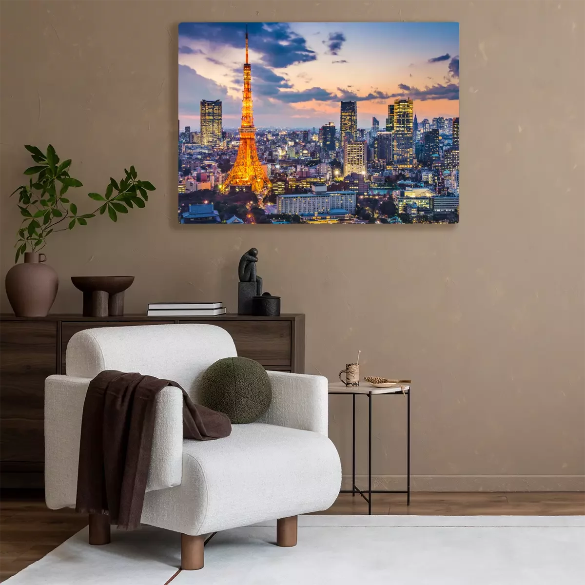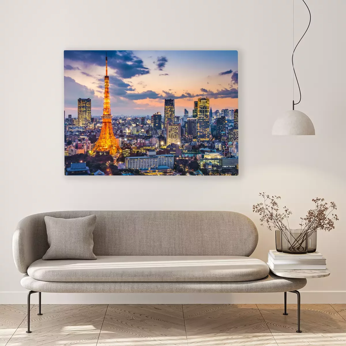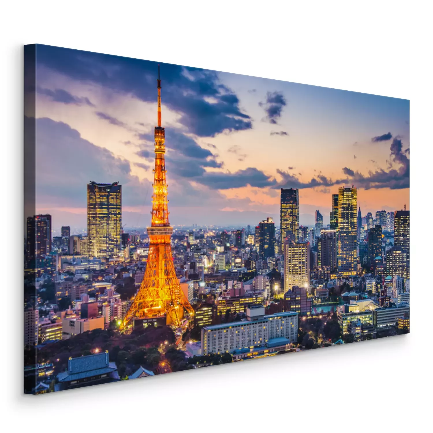 Canvas: Financiële wijk met de Tokiotoren bij nacht