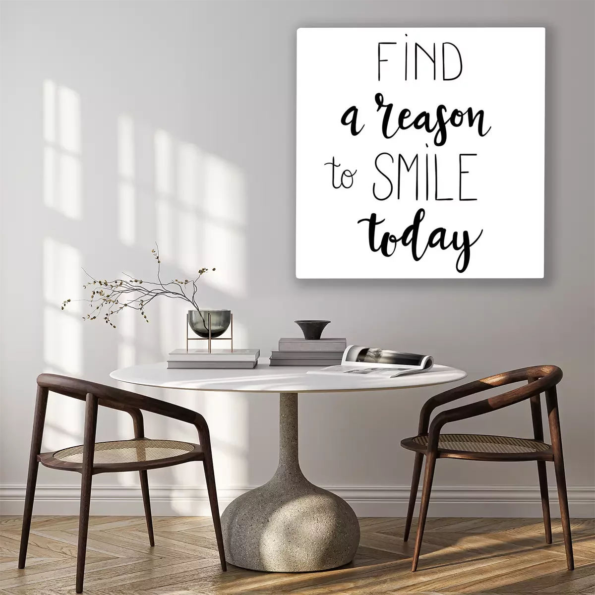 Canvas: "Find a reason to smile today" hand drawn vector lettering. Inspirational and motivational calligraphic quote. Hand written isolated lettering.