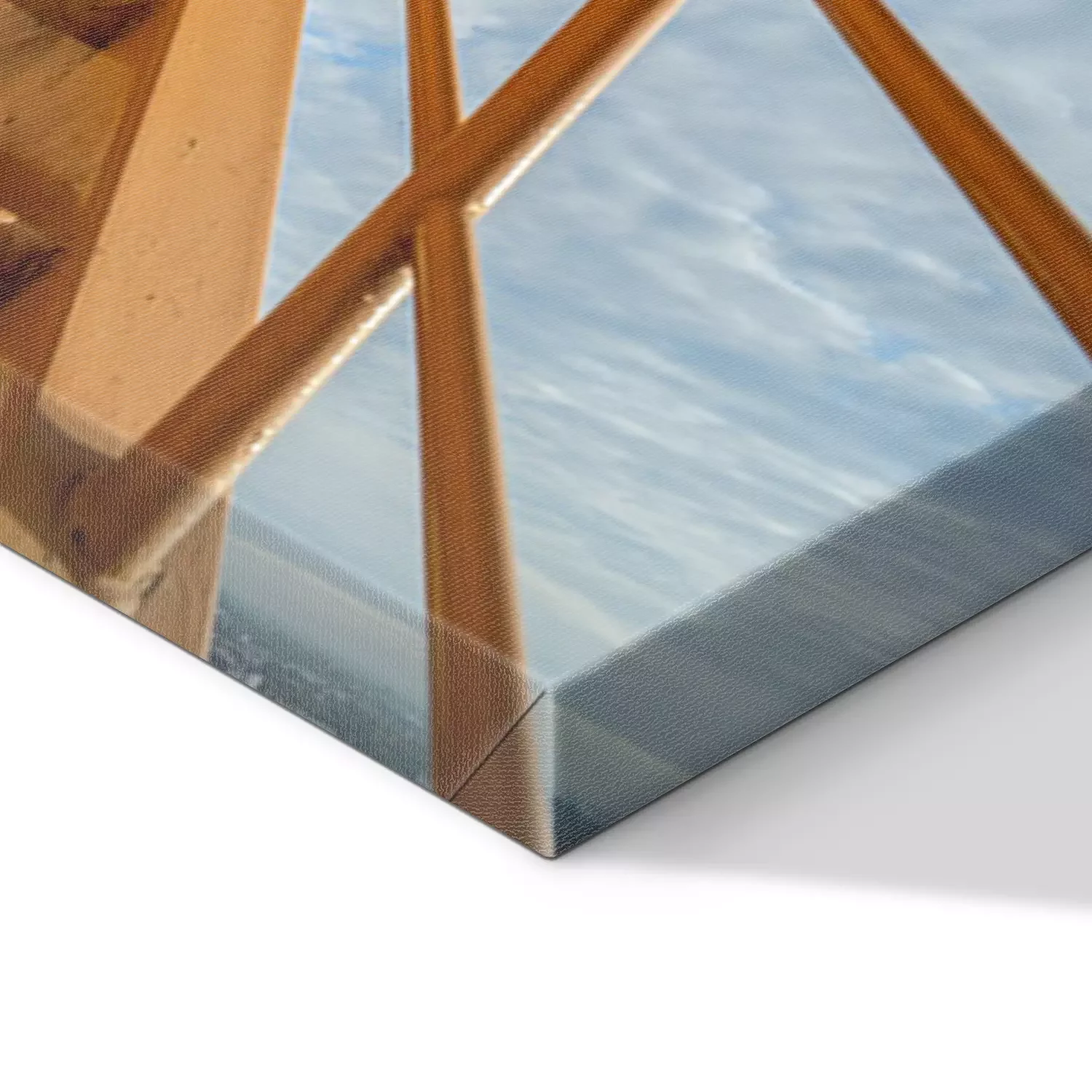 De print wordt aangebracht op hoogwaardig canvas dat op een schildersweefgetouw (spieraam) wordt gespannen. Omdat de print de zijranden bedekt, hoeft het ontwerp niet met een extra kader te worden omlijst. Wij raden ook composities aan die uit meerdere foto's bestaan en zo een coherente compositie vormen.