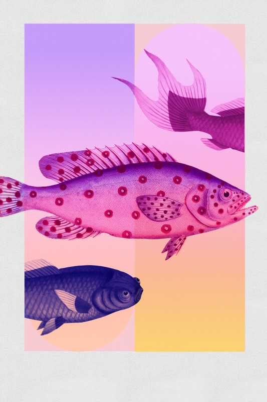 Canvas: Fish in Pastels - Stylized Fish Against Gradient Shapes