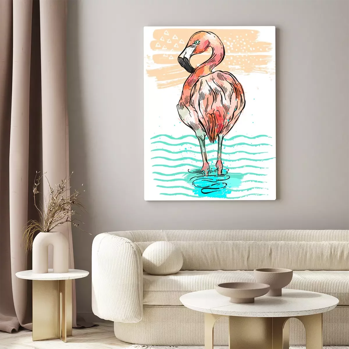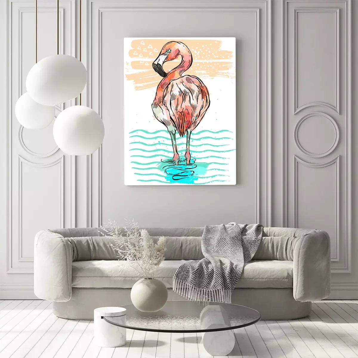 Canvas: Flamingo-illustratie