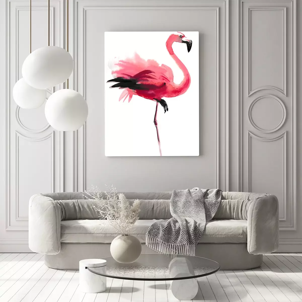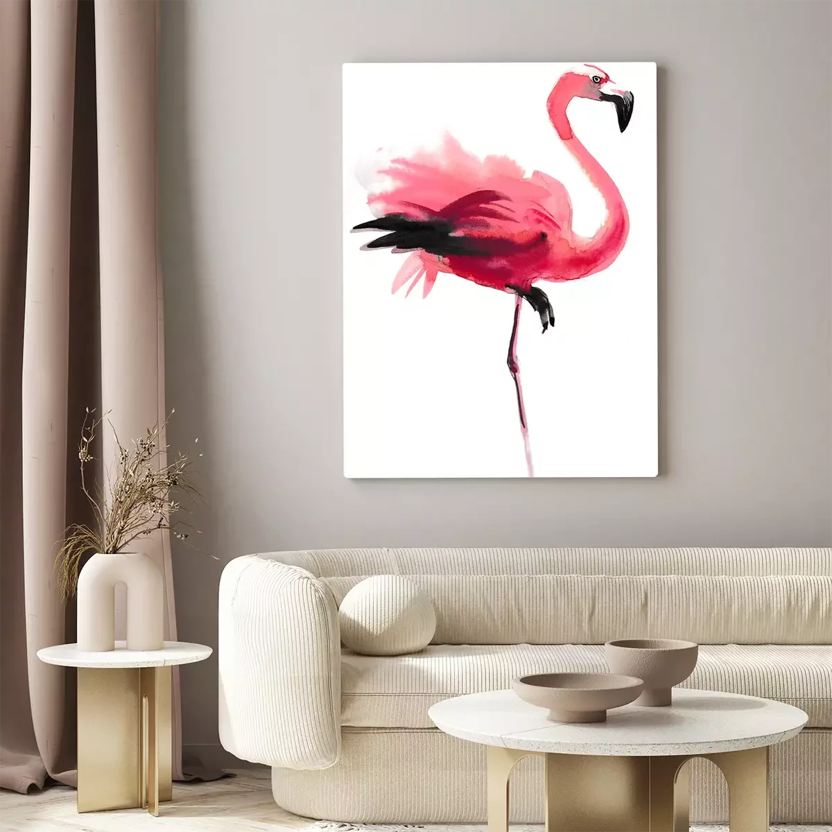 Canvas Flamingo met een zwarte snavel