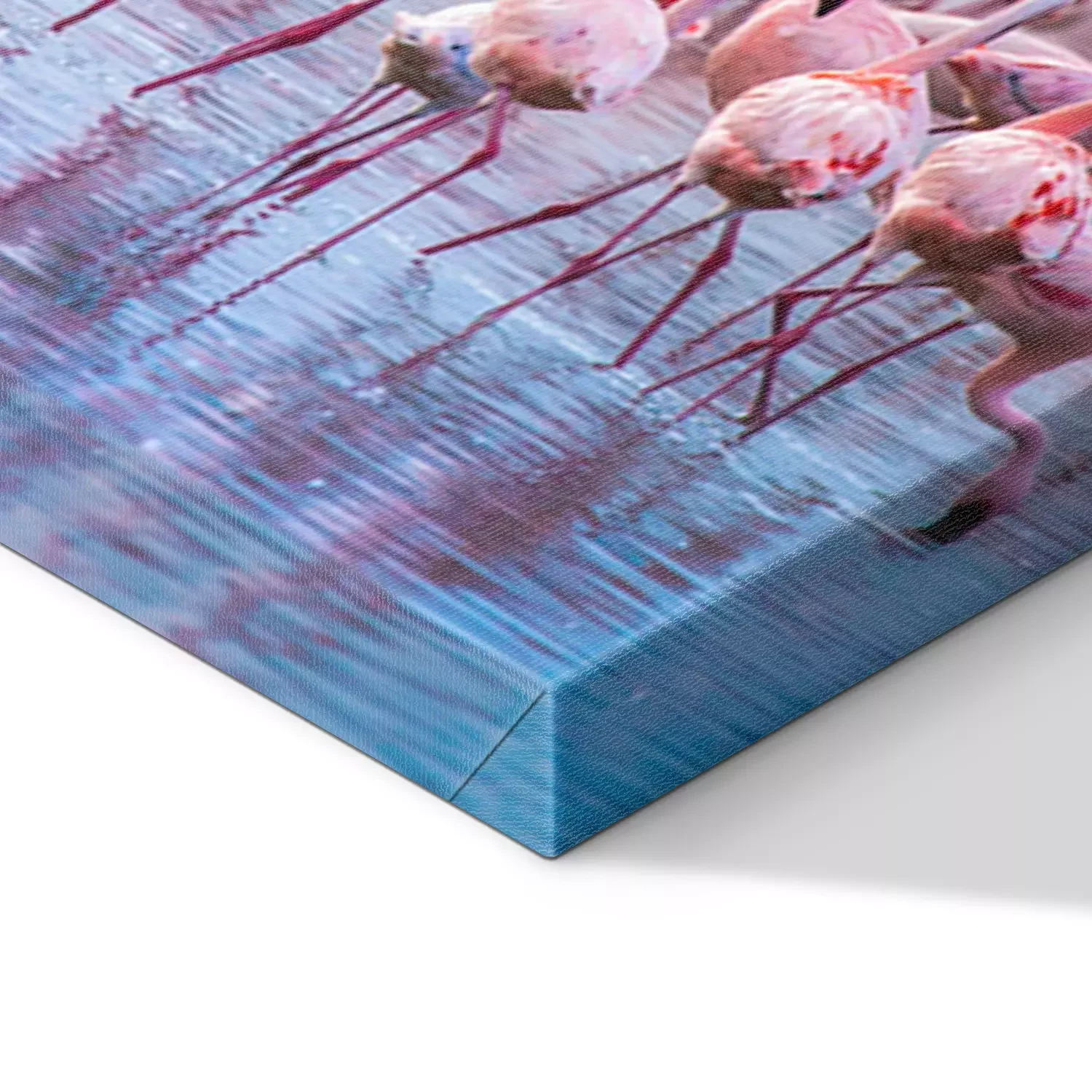 De print wordt aangebracht op hoogwaardig canvas dat op een schildersweefgetouw (spieraam) wordt gespannen. Omdat de print de zijranden bedekt, hoeft het ontwerp niet met een extra kader te worden omlijst. Wij raden ook composities aan die uit meerdere foto's bestaan en zo een coherente compositie vormen.