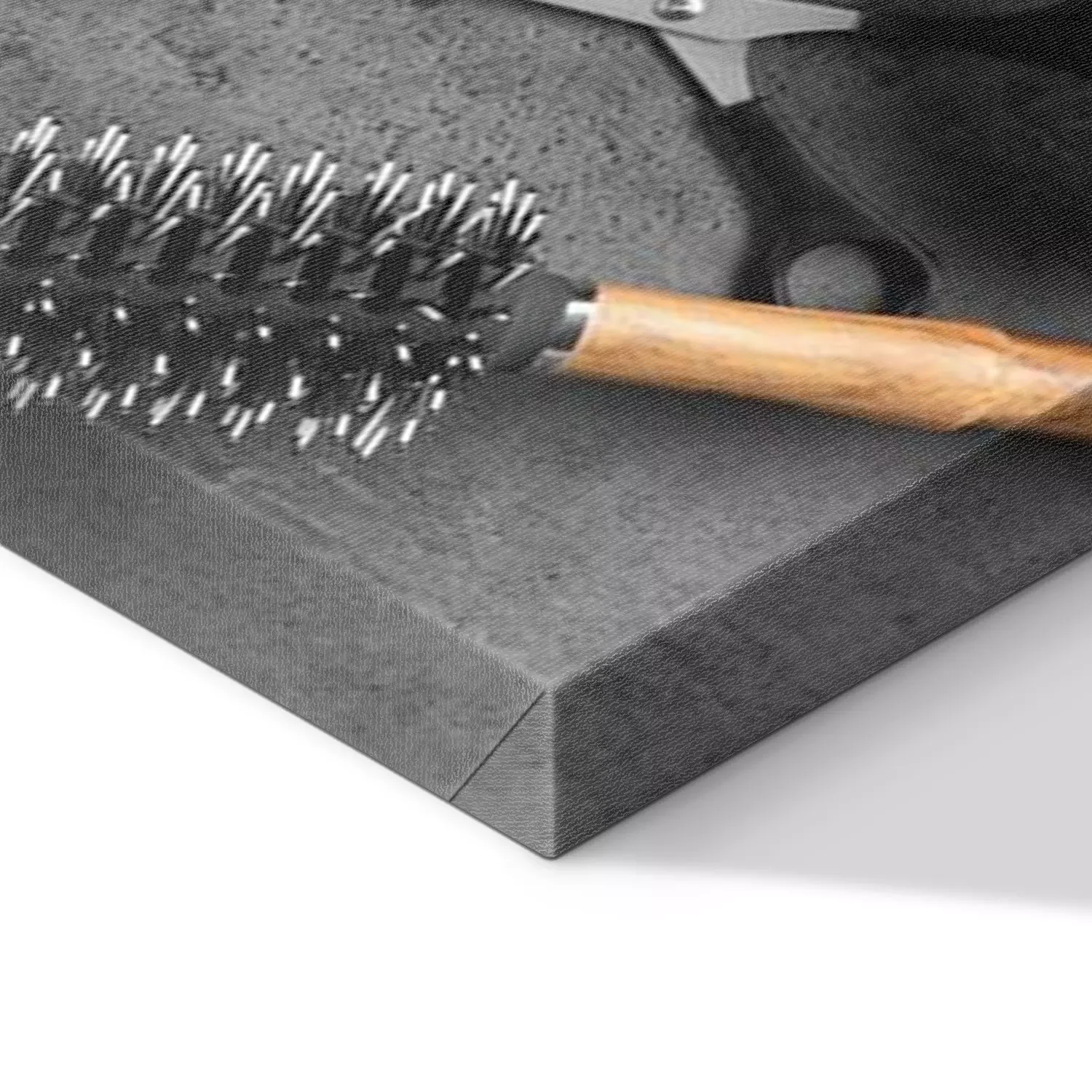 De print wordt aangebracht op hoogwaardig canvas dat op een schildersweefgetouw (spieraam) wordt gespannen. Omdat de print de zijranden bedekt, hoeft het ontwerp niet met een extra kader te worden omlijst. Wij raden ook composities aan die uit meerdere foto's bestaan en zo een coherente compositie vormen.