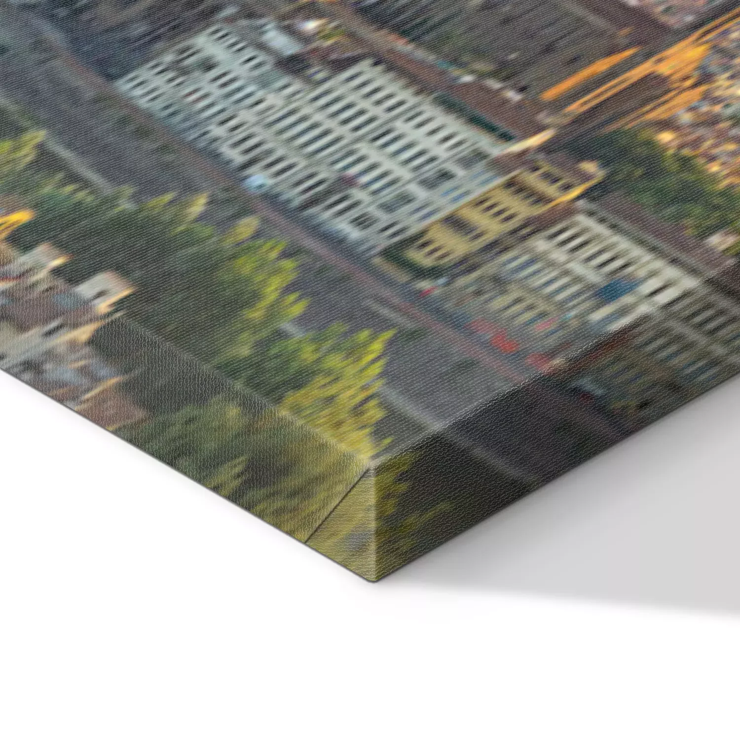 De print wordt aangebracht op hoogwaardig canvas dat op een schildersweefgetouw (spieraam) wordt gespannen. Omdat de print de zijranden bedekt, hoeft het ontwerp niet met een extra kader te worden omlijst. Wij raden ook composities aan die uit meerdere foto's bestaan en zo een coherente compositie vormen.