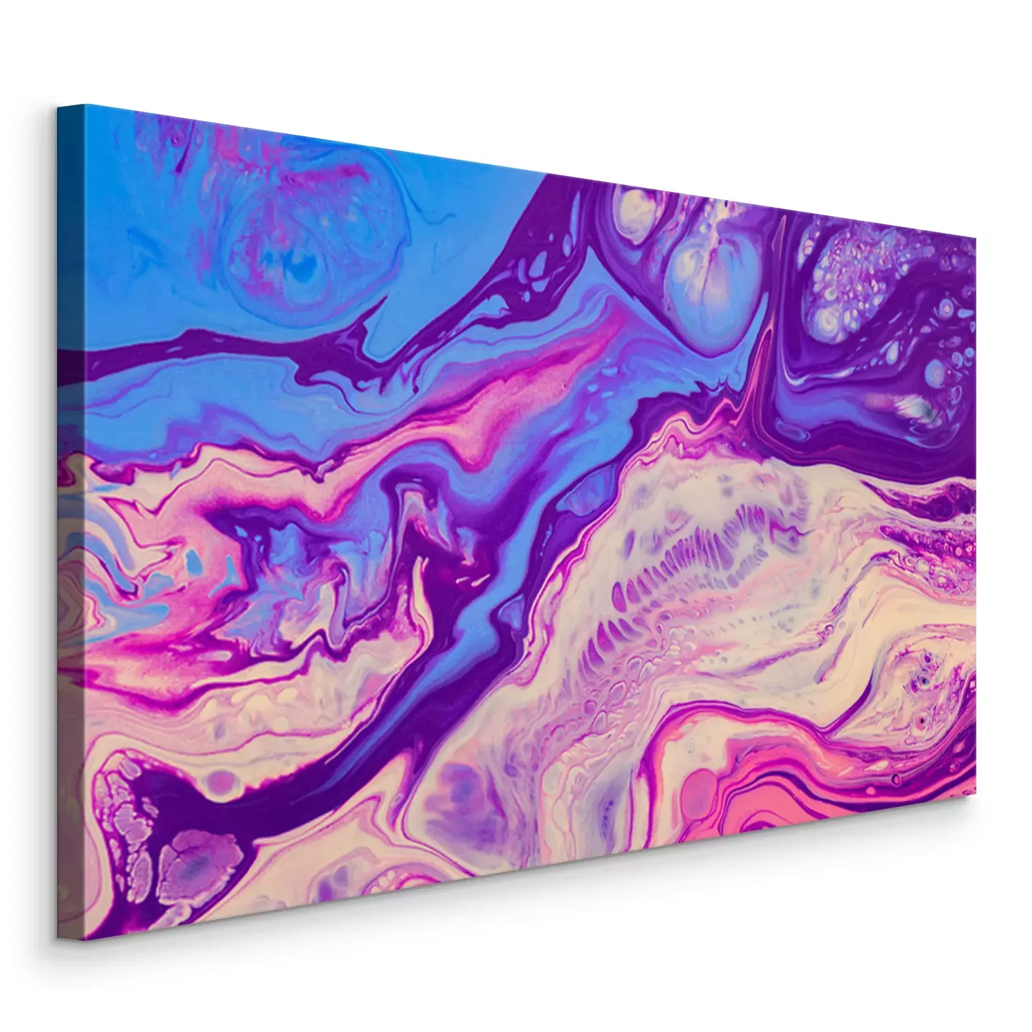 Canvas Fluid art texture. Abstract backdrop with iridescent paint effect. Liquid acrylic artwork with flows and splashes. Mixed paints for website background. Purple, pink, blue and white overflowing colors
