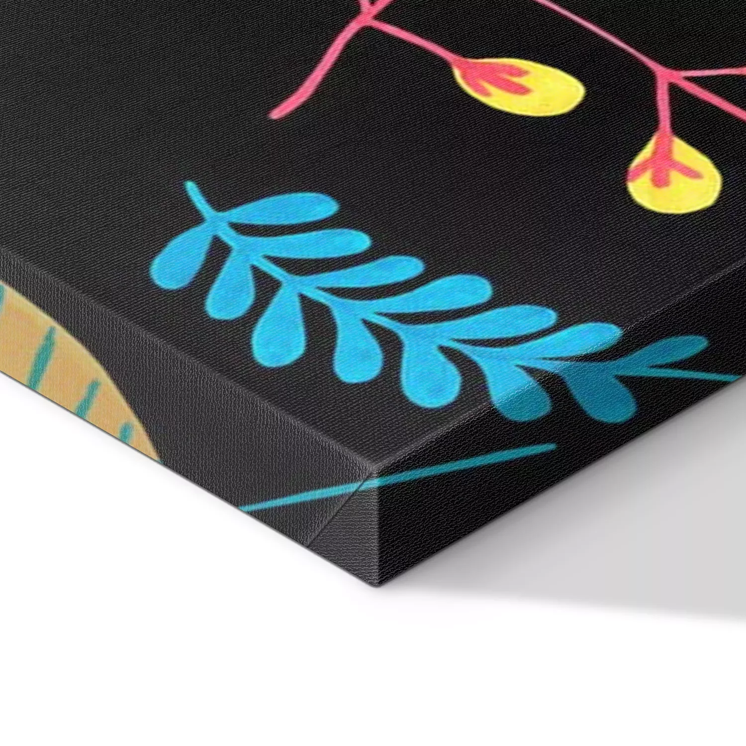 De print wordt aangebracht op hoogwaardig canvas dat op een schildersweefgetouw (spieraam) wordt gespannen. Omdat de print de zijranden bedekt, hoeft het ontwerp niet met een extra kader te worden omlijst. Wij raden ook composities aan die uit meerdere foto's bestaan en zo een coherente compositie vormen.