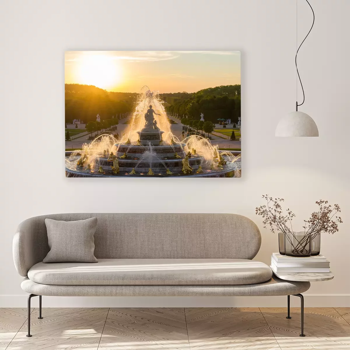 Canvas: Fontaine de Versailles sur un coucher de soleil