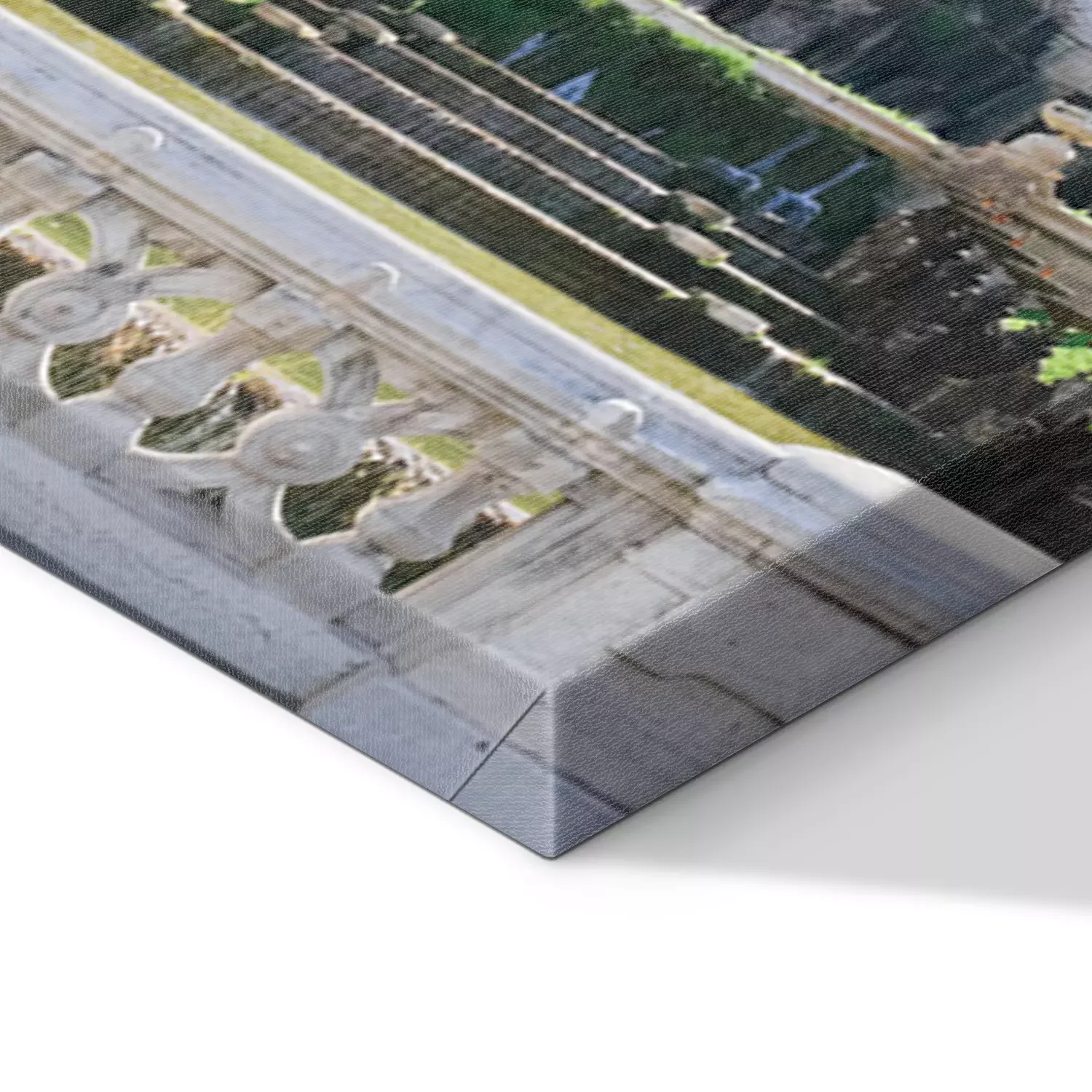 De print wordt aangebracht op hoogwaardig canvas dat op een schildersweefgetouw (spieraam) wordt gespannen. Omdat de print de zijranden bedekt, hoeft het ontwerp niet met een extra kader te worden omlijst. Wij raden ook composities aan die uit meerdere foto's bestaan en zo een coherente compositie vormen.