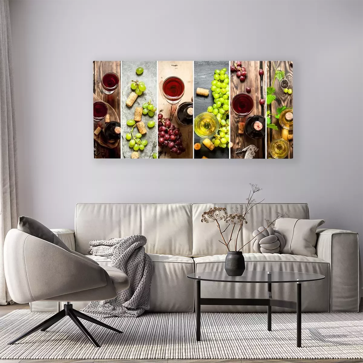 Canvas: Food collage van rode en witte wijn.