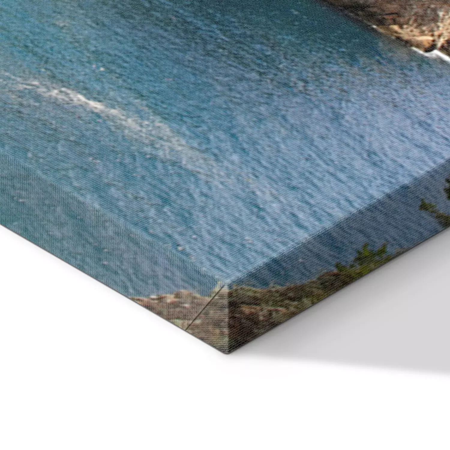 De print wordt aangebracht op hoogwaardig canvas dat op een schildersweefgetouw (spieraam) wordt gespannen. Omdat de print de zijranden bedekt, hoeft het ontwerp niet met een extra kader te worden omlijst. Wij raden ook composities aan die uit meerdere foto's bestaan en zo een coherente compositie vormen.