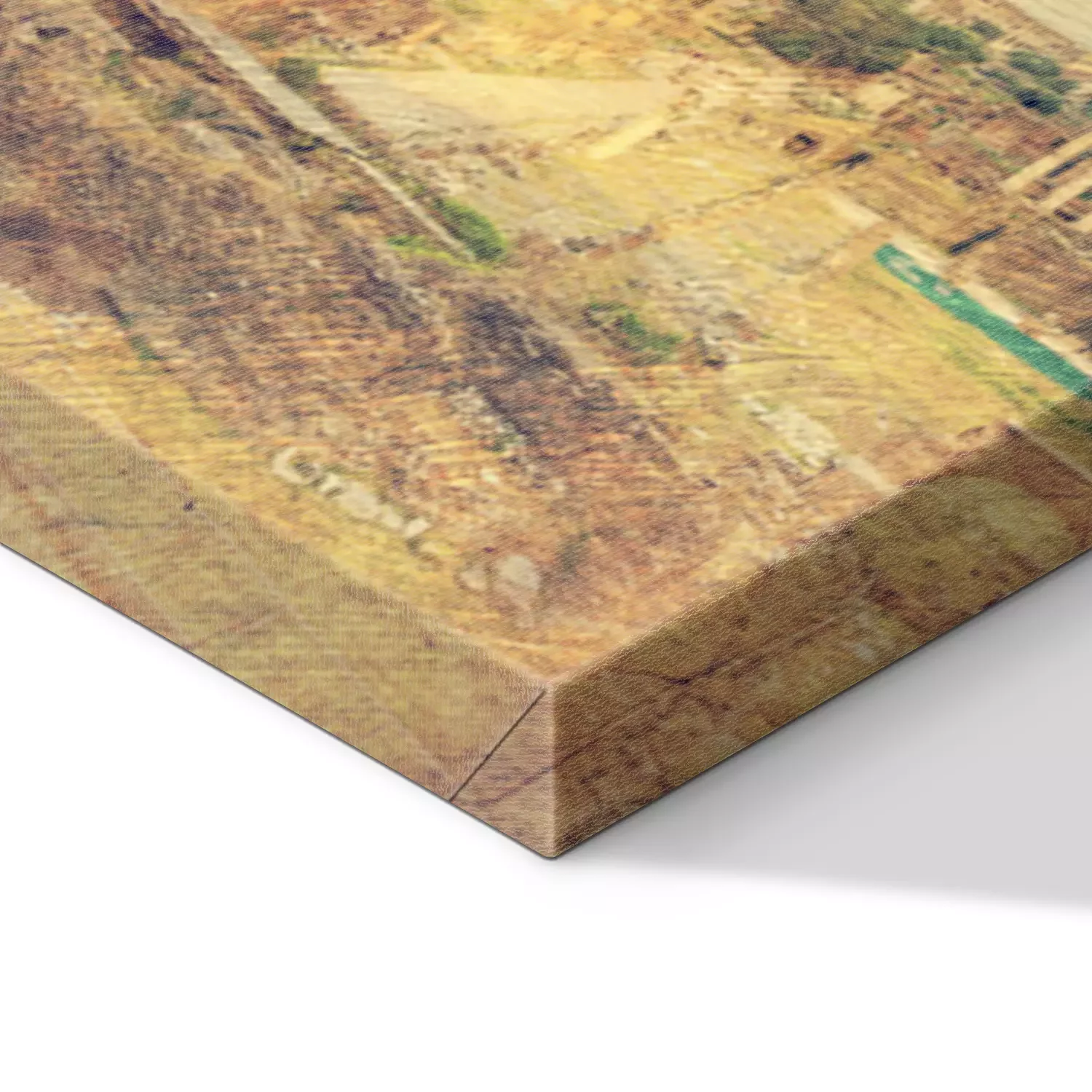 De print wordt aangebracht op hoogwaardig canvas dat op een schildersweefgetouw (spieraam) wordt gespannen. Omdat de print de zijranden bedekt, hoeft het ontwerp niet met een extra kader te worden omlijst. Wij raden ook composities aan die uit meerdere foto's bestaan en zo een coherente compositie vormen.
