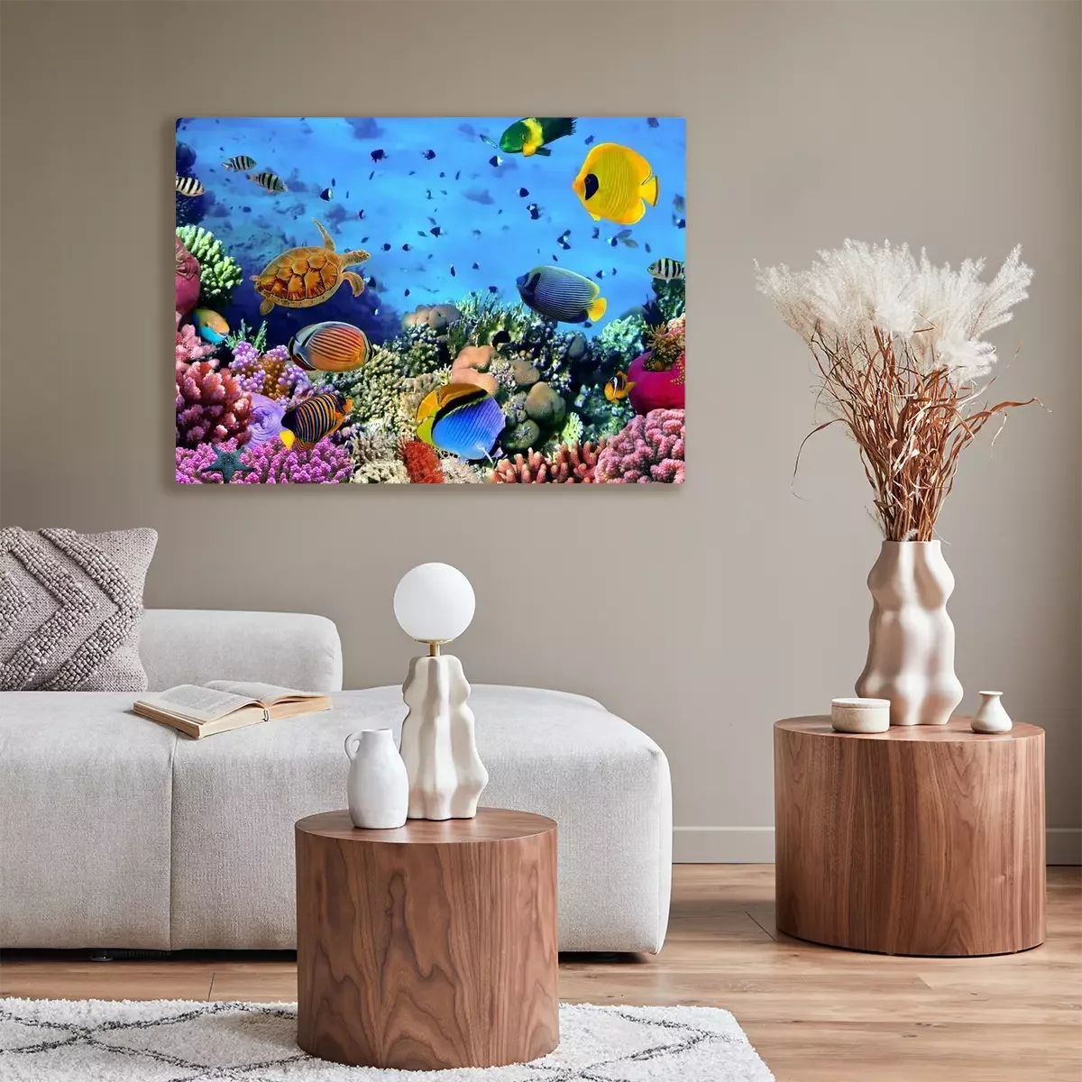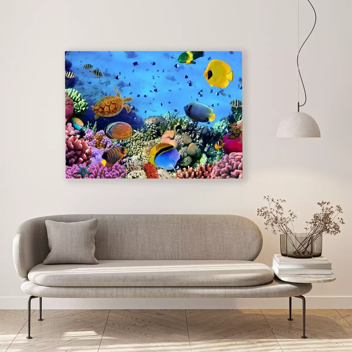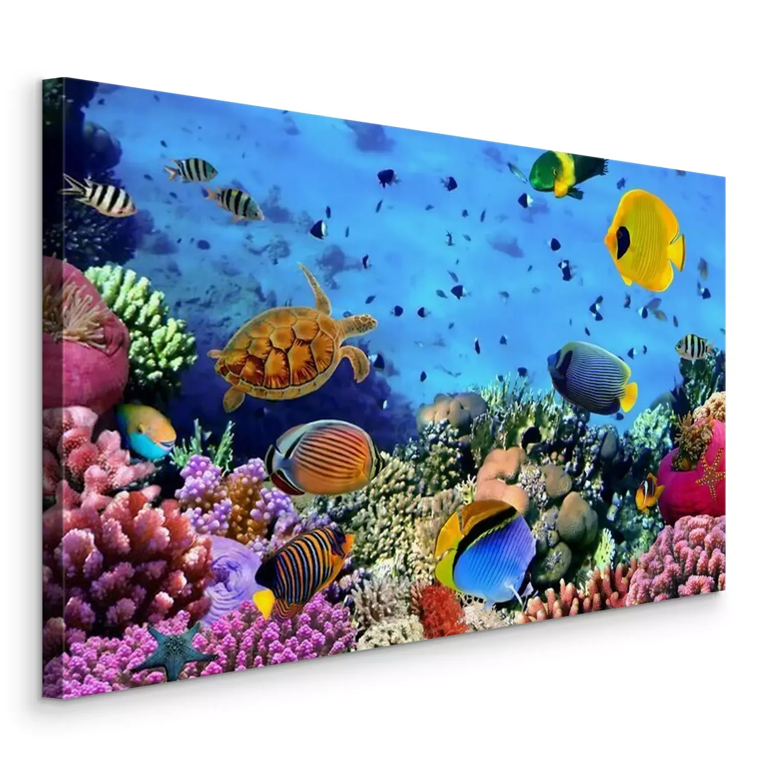 De print wordt aangebracht op hoogwaardig canvas dat op een schildersweefgetouw (spieraam) wordt gespannen. Omdat de print de zijranden bedekt, hoeft het ontwerp niet met een extra kader te worden omlijst. Wij raden ook composities aan die uit meerdere foto's bestaan en zo een coherente compositie vormen.