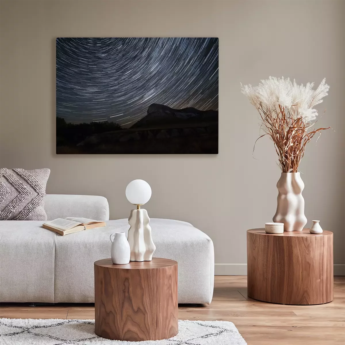 De print wordt aangebracht op hoogwaardig canvas dat op een schildersweefgetouw (spieraam) wordt gespannen. Omdat de print de zijranden bedekt, hoeft het ontwerp niet met een extra kader te worden omlijst. Wij raden ook composities aan die uit meerdere foto's bestaan en zo een coherente compositie vormen.